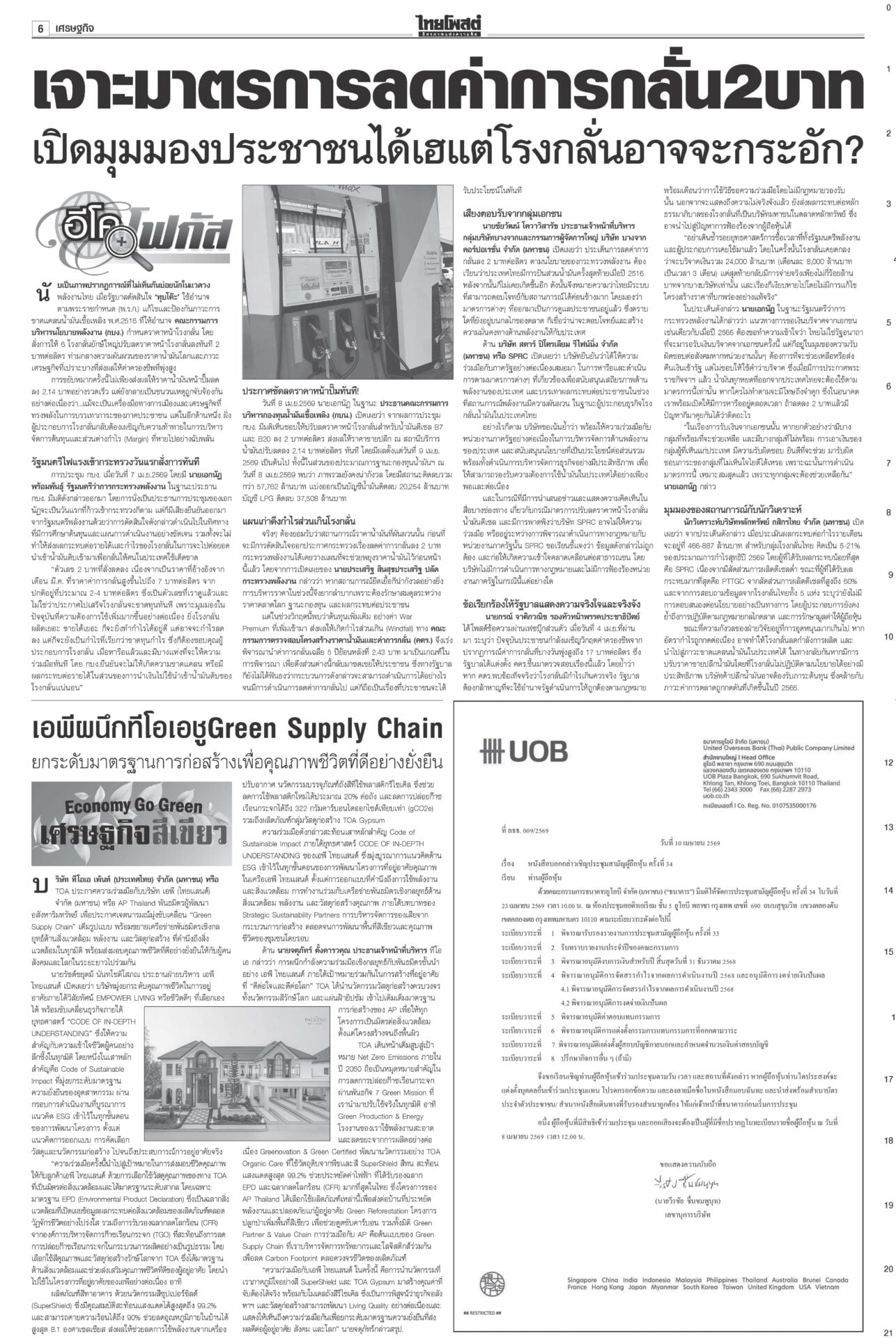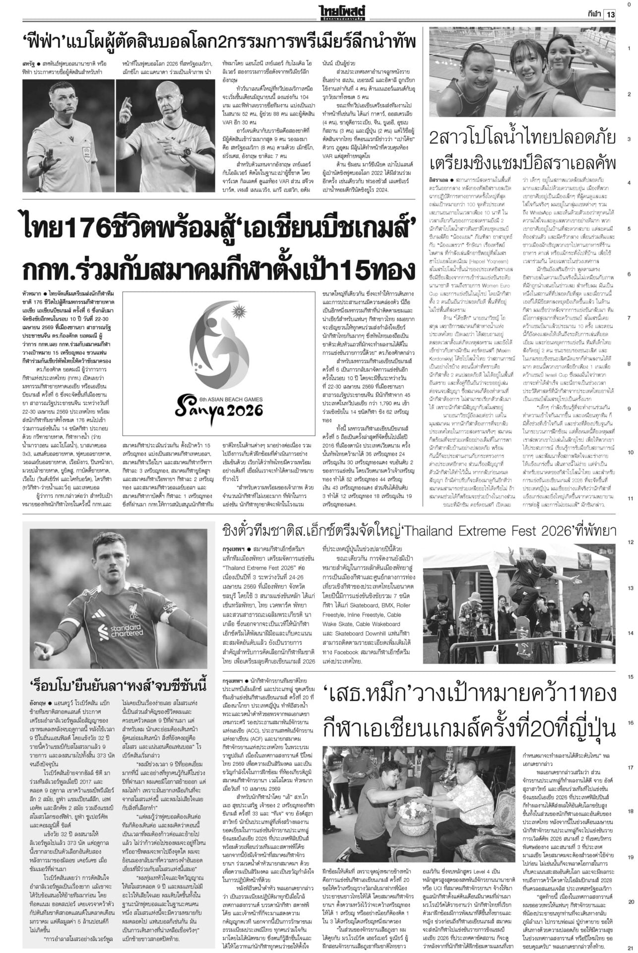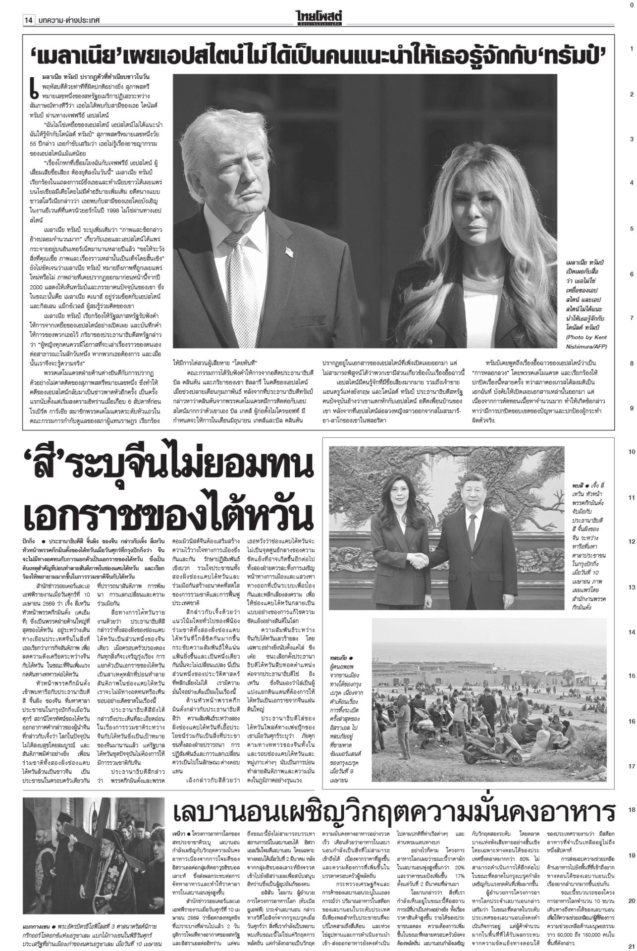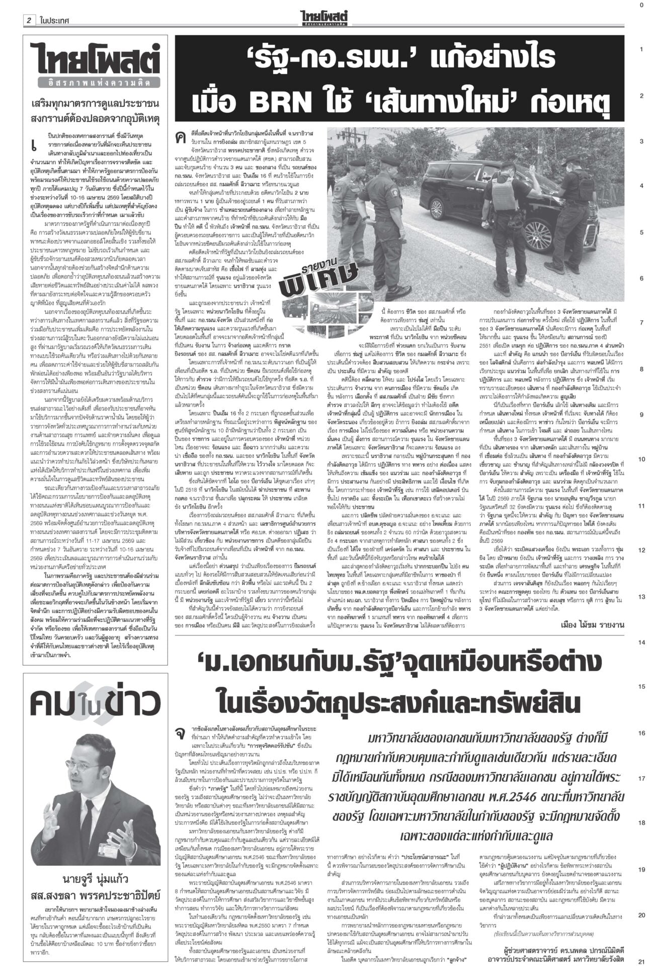 หนังสือพิมพ์ ฉบับวันที่ 11 เมษายน 2569ข่าวหน้าหนึ่งรุมถล่มโยงทุนเทา สุริยะ-ประเสริฐเต้นแจง/‘ชวน’ท้า‘หนู’พิสูจน์รัฐบาลไม่โกงแถลงนโยบายวันที่สอง “อนุทิน” ยังงดจ้อสื่อ “ฝ่ายค้าน” ดาหน้าถล่มรัฐบาล “โรม” ซัดรัฐบาลไม่จริงใจปราบทุนเทา เฮ!ลดแรง‘ดีเซล-โซฮอล์’ลดแรงรับสงกรานต์! กบน.หั่นราคาดีเซล-เบนซินทุกชนิด สูงสุด 6 บาท “เอกนิติ” ชง ครม. อัดแพ็กเกจหยุดเลือดไหล อุ้มบัตรคนจน-ขนส่ง-ประมง-ดูแลราคาสินค้า 28มิ.ย.เลือกตั้งผู้ว่าฯกทม.เลขาฯ ป.ป.ช.แจงยื่นฟันจริยธรรม 44 สส.ก้าวไกล ไม่ดูแค่สิทธิเสนอแก้กฎหมาย สั่งคุมเข้ม7วันอันตราย คาร์พูลเที่ยวสงกรานต์“อนุทิน” เข้มมาตรการ 7 วันอันตรายช่วงสงกรานต์ บังคับใช้ กม.ผู้กระทำผิด