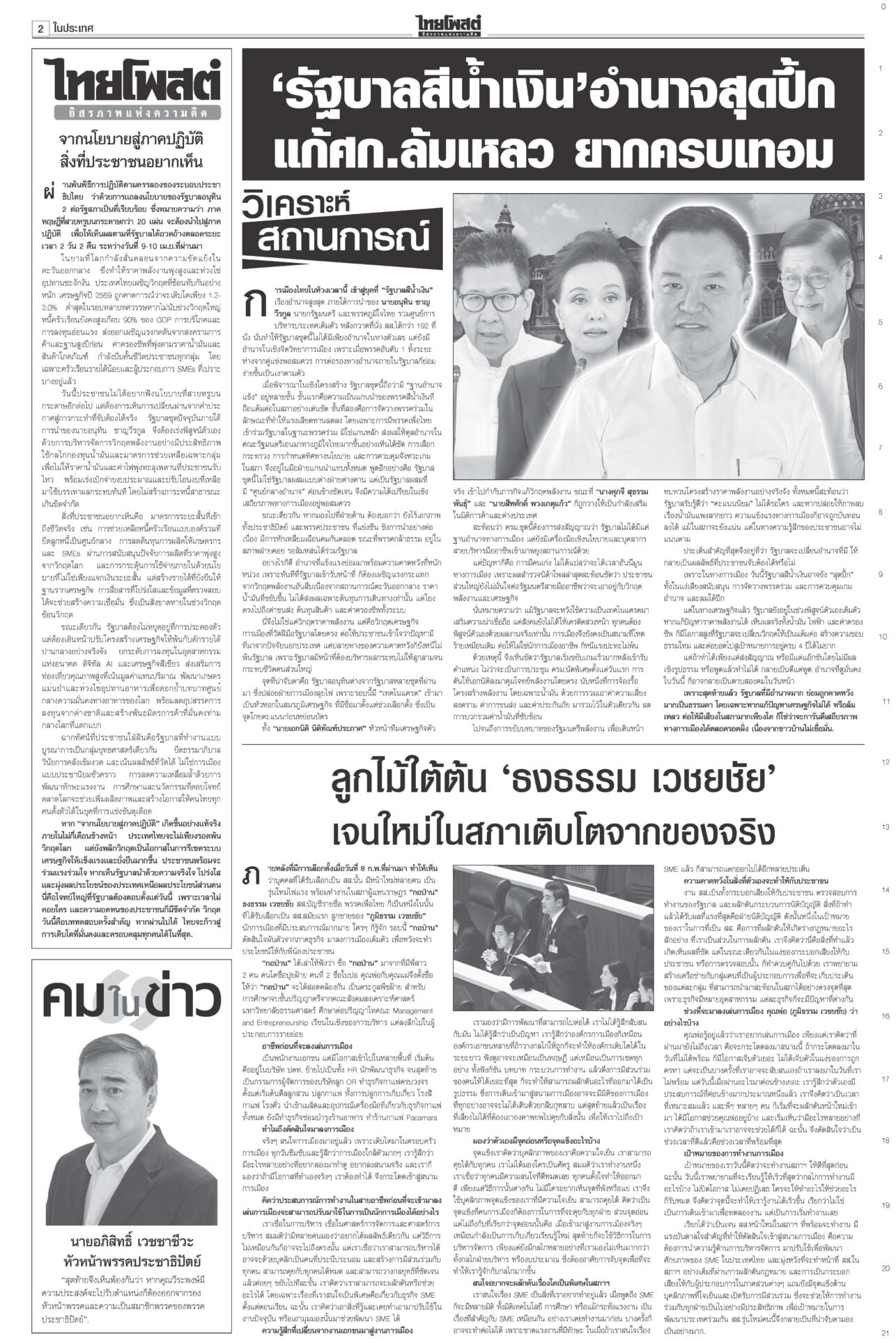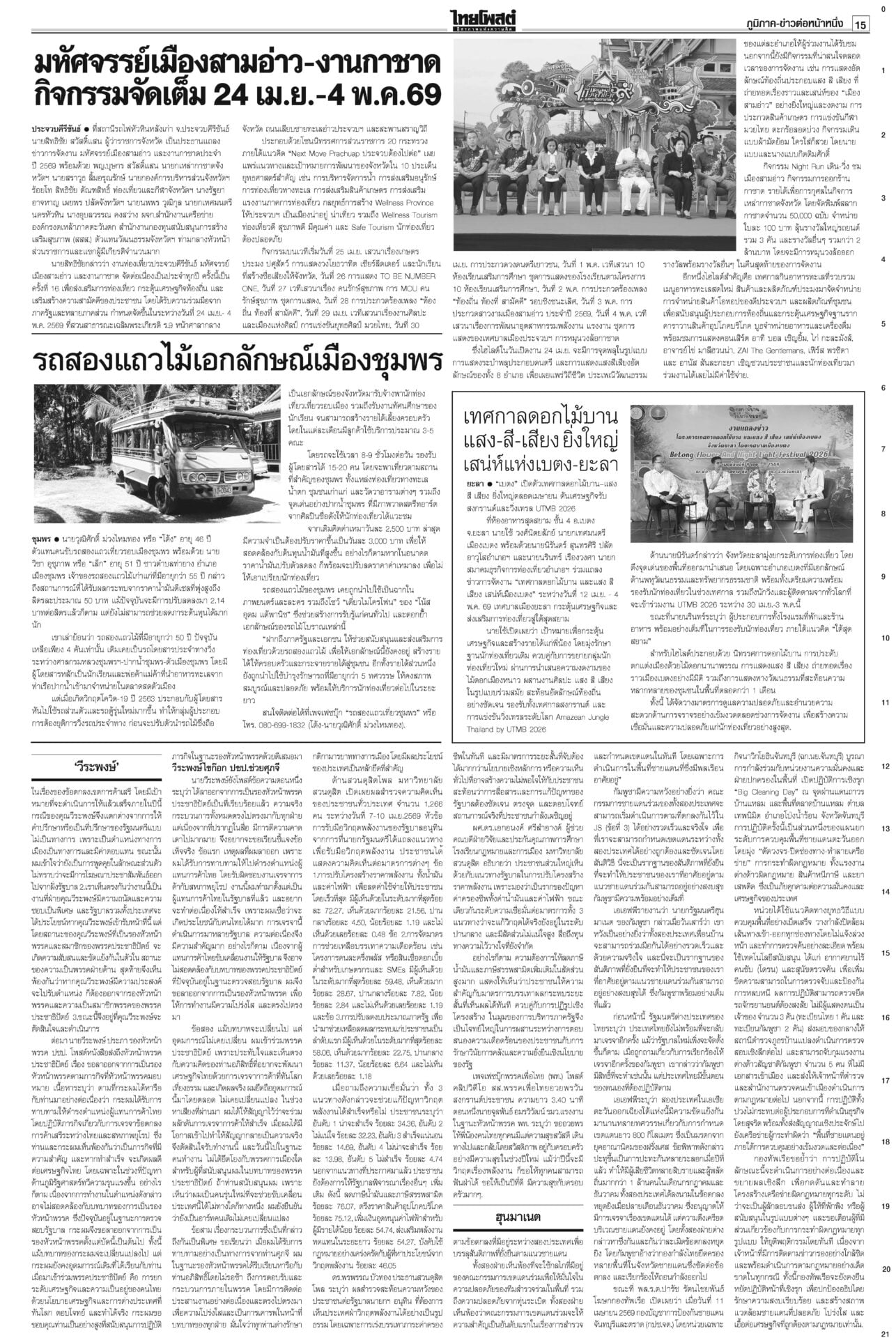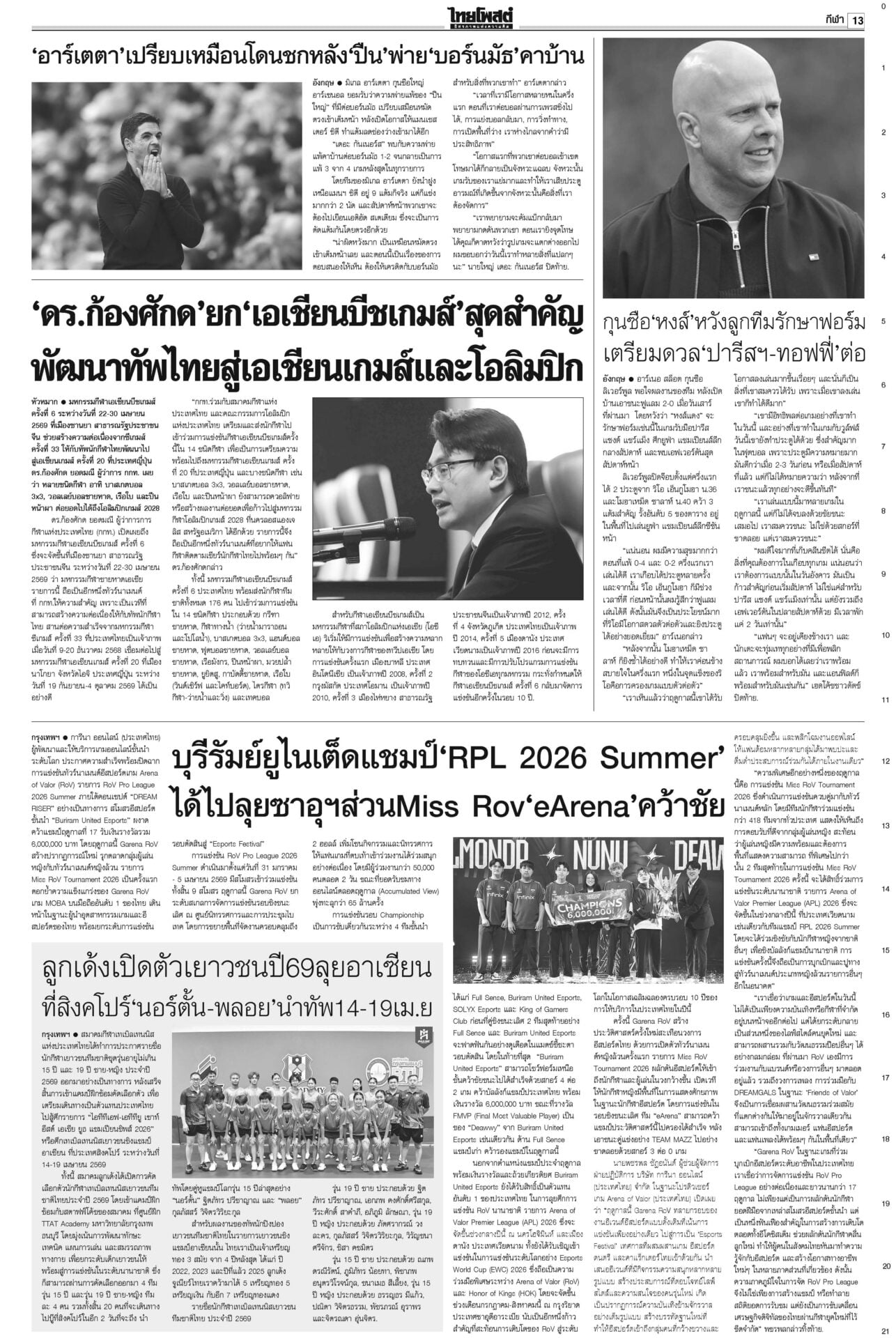หนังสือพิมพ์ ฉบับวันที่ 13 เมษายน 2569ข่าวหน้าหนึ่งดีลสันติภาพเหลว! โลกผิดหวัง21ชม.ไร้ข้อสรุป‘อิหร่าน’เดือดสหรัฐขอมากไปเจรจายุติสงครามตะวันออกกลางระหว่างสหรัฐกับอิหร่านล้มเหลว อนุทินให้ปชช.ตักตวงสุข 2วันสงกรานต์เซ่น71ศพ“อนุทิน” อวยพรสงกรานต์ ขอ ปชช.ตักตวงความสุข ใช้วันหยุดกับครอบครัว ฮุนมาเนตบี้ไทย ปักปันเขตแดน ลั่นเขมรพร้อม“ฮุน มาเนต” โพสต์จี้ไทยเร่งปักปันเขตแดน 2 ประเทศให้เร็วที่สุด ‘วีระพงษ์’ทิ้งปชป.ซบศุภจี“นายกฯ” ลงพื้นที่แบบออร์แกนิกช่วงสงกรานต์ เยือนเชียงรายถึงสนามบินร่วมแจมเป่าขลุ่ยกับกลุ่มผู้สูงอายุพื้นเมือง
