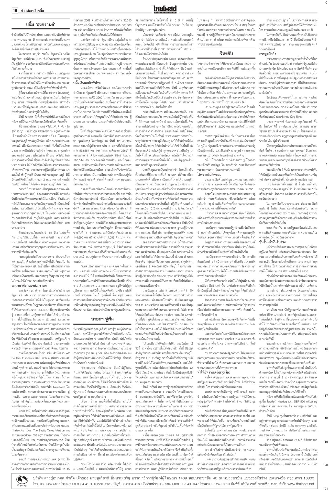 ฉบับวันที่ 16 เมษายน 2569