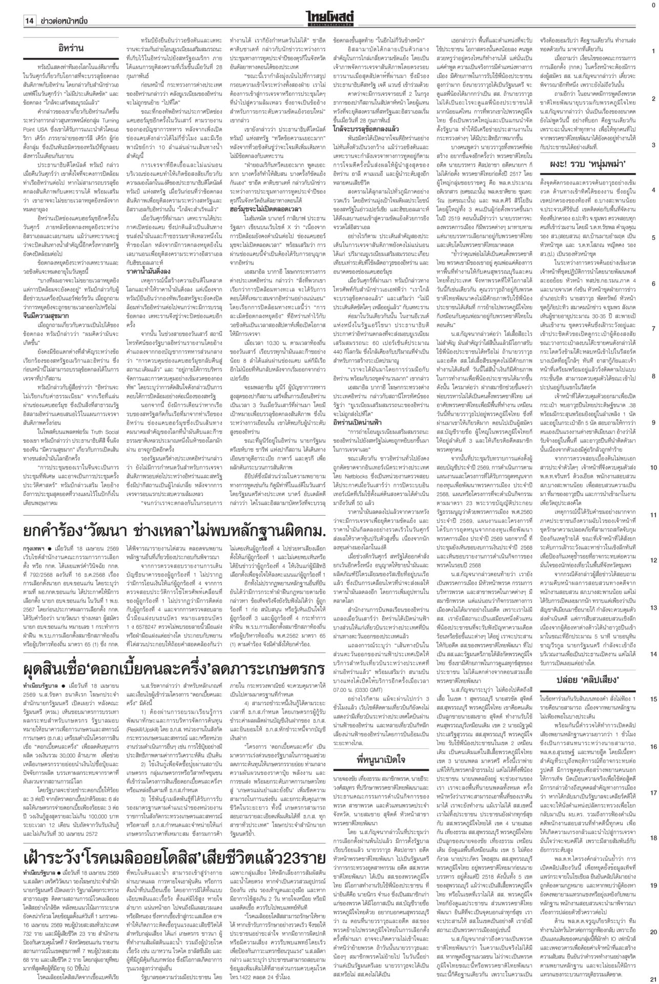ฉบับวันที่ 19 เมษายน 2569