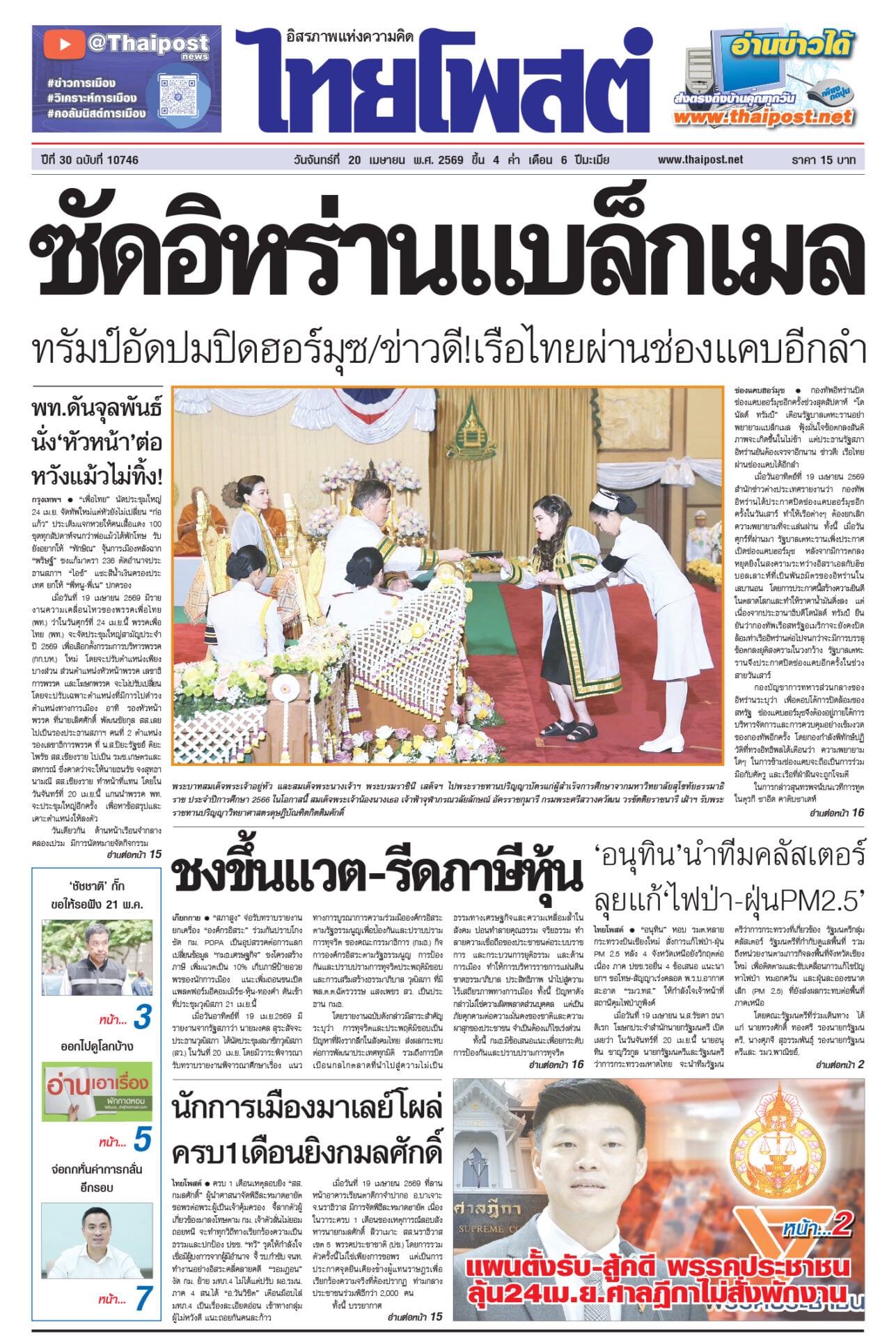 ฉบับวันที่ 20 เมษายน 2569