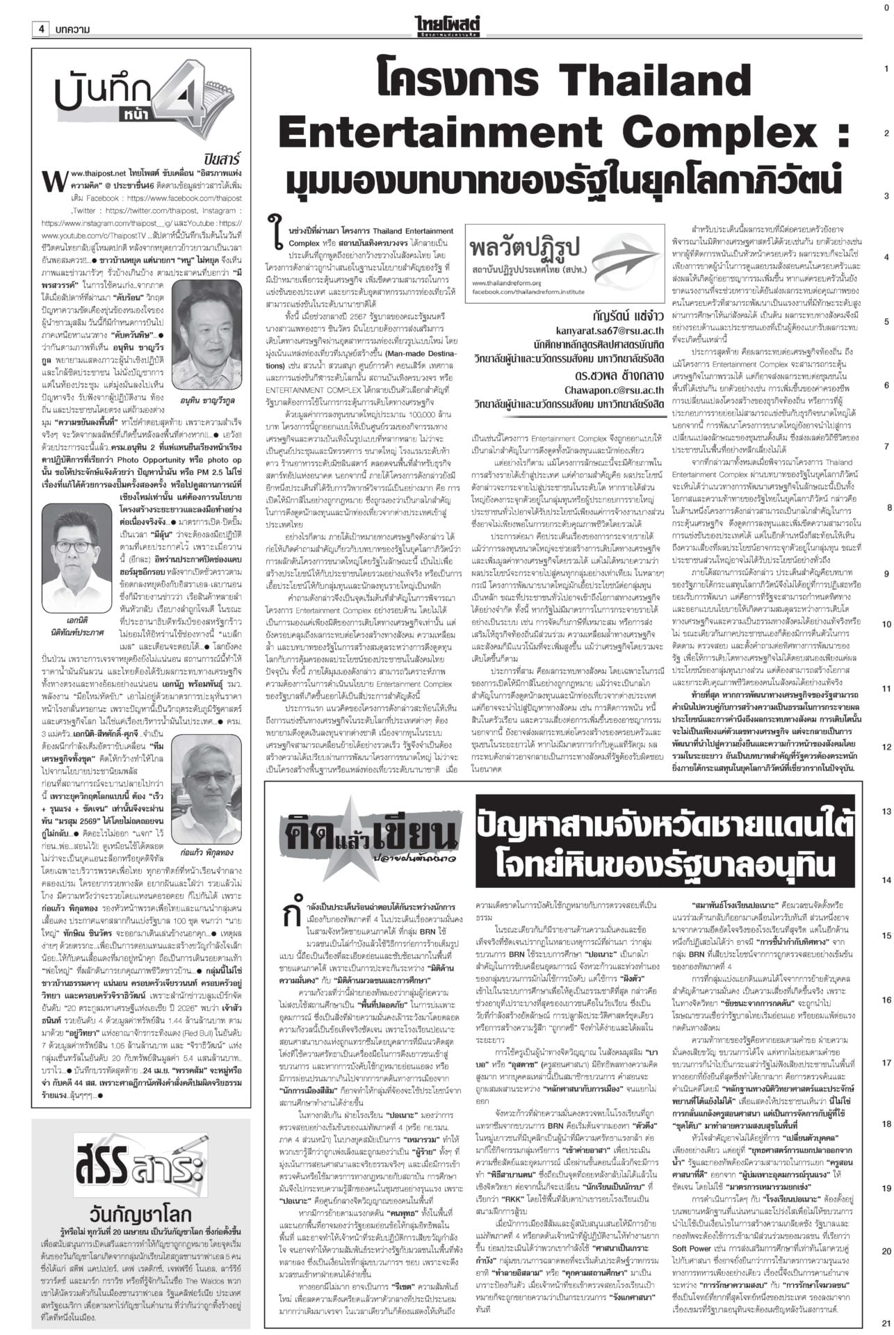 ฉบับวันที่ 16 เมษายน 2569