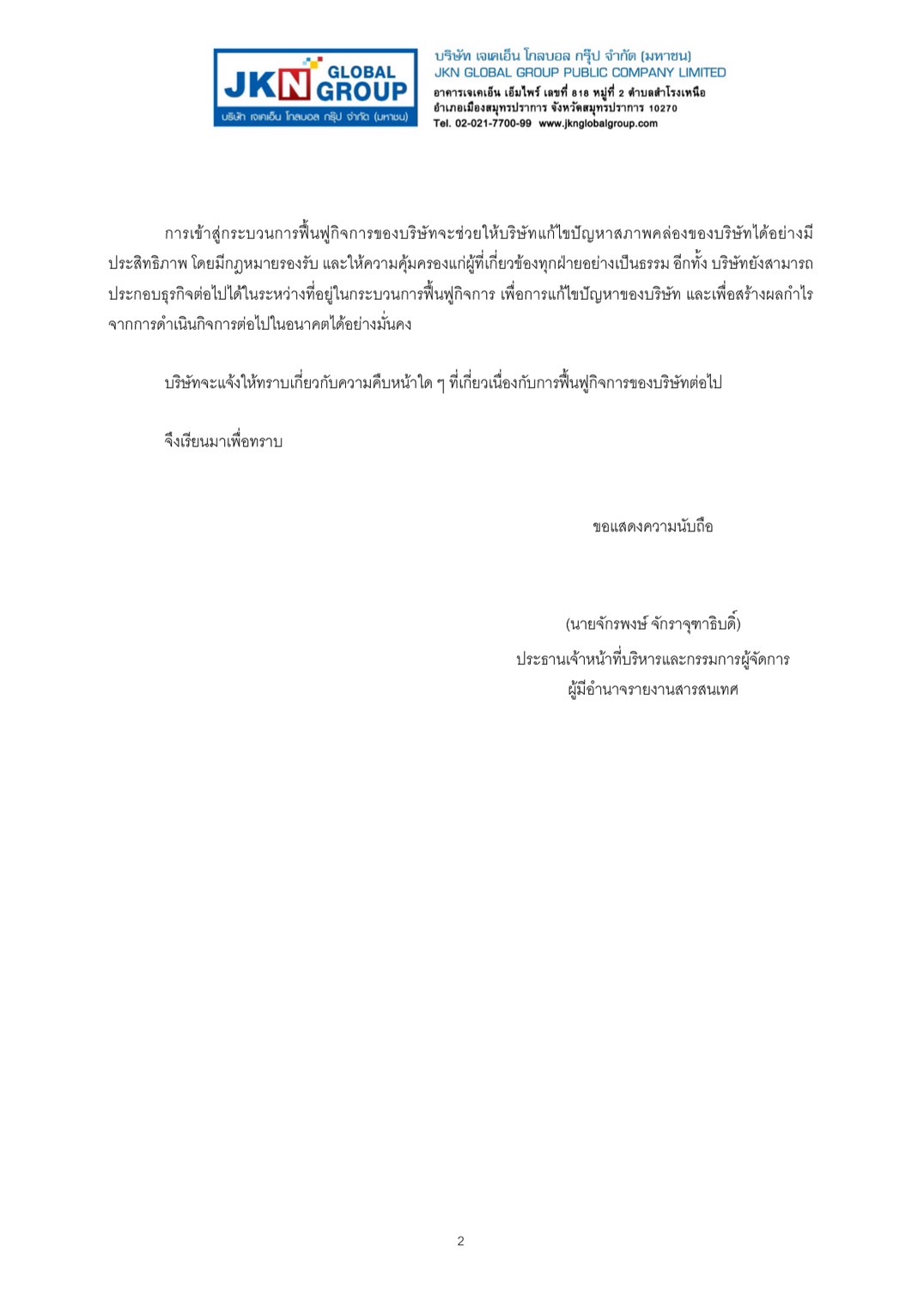 บริษัทเสนอ บริษัท เจเคเอ็น โกลบอล กรุ๊ป จำกัด (มหาชน) เป็นผู้ทำแผน