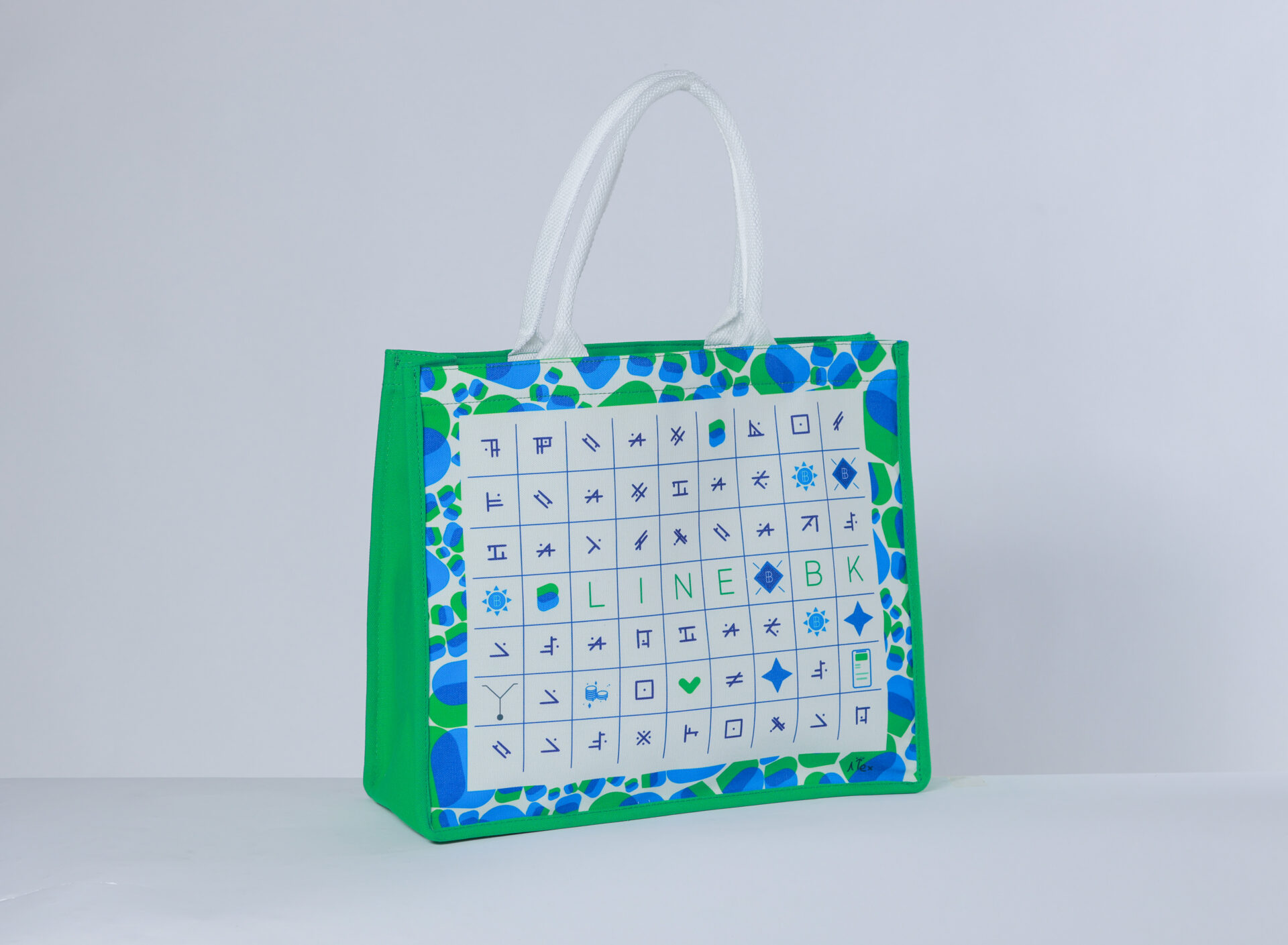 สำหรับแนวคิดในการออกแบบกระเป๋าผ้าคอลเล็กชันพิเศษครั้งนี้ น้องอเล็ก ได้นำตัวอักษรที่สร้างสรรค์ขึ้นมาเอง มาผสานกับสีสันและโลโก้ ของแบรนด์ LINE BK จนได้ผลงานลวดลายกระเป๋าที่สนุกสนานและสร้างความสุขให้กับผู้ที่ได้รับ ทั้งนี้น้องอเล็กชนกรณ์พุกะทรัพย์ ศิลปินเด็กพิเศษ เผยว่า “ผมชอบโลโก้และสีของ LINE BK มากครับ มองแล้วรู้สึกถึงความสนุกสนาน ร่าเริง เปรียบเสมือนความสดใส ความสุขที่อยู่รอบตัว ‘เรา’ ส่วนตัวอักษรที่ใช้ ผมคิดขึ้นเอง เป็นภาษาแห่งความสุขในโลกของผม ‘โลกของอเล็ก’ อยากให้ทุกคนได้ก้าวเข้ามาในโลกของผม ที่สามารถพูดคุยกันอย่างมีความสุขและจริงใจต่อกันครับ”