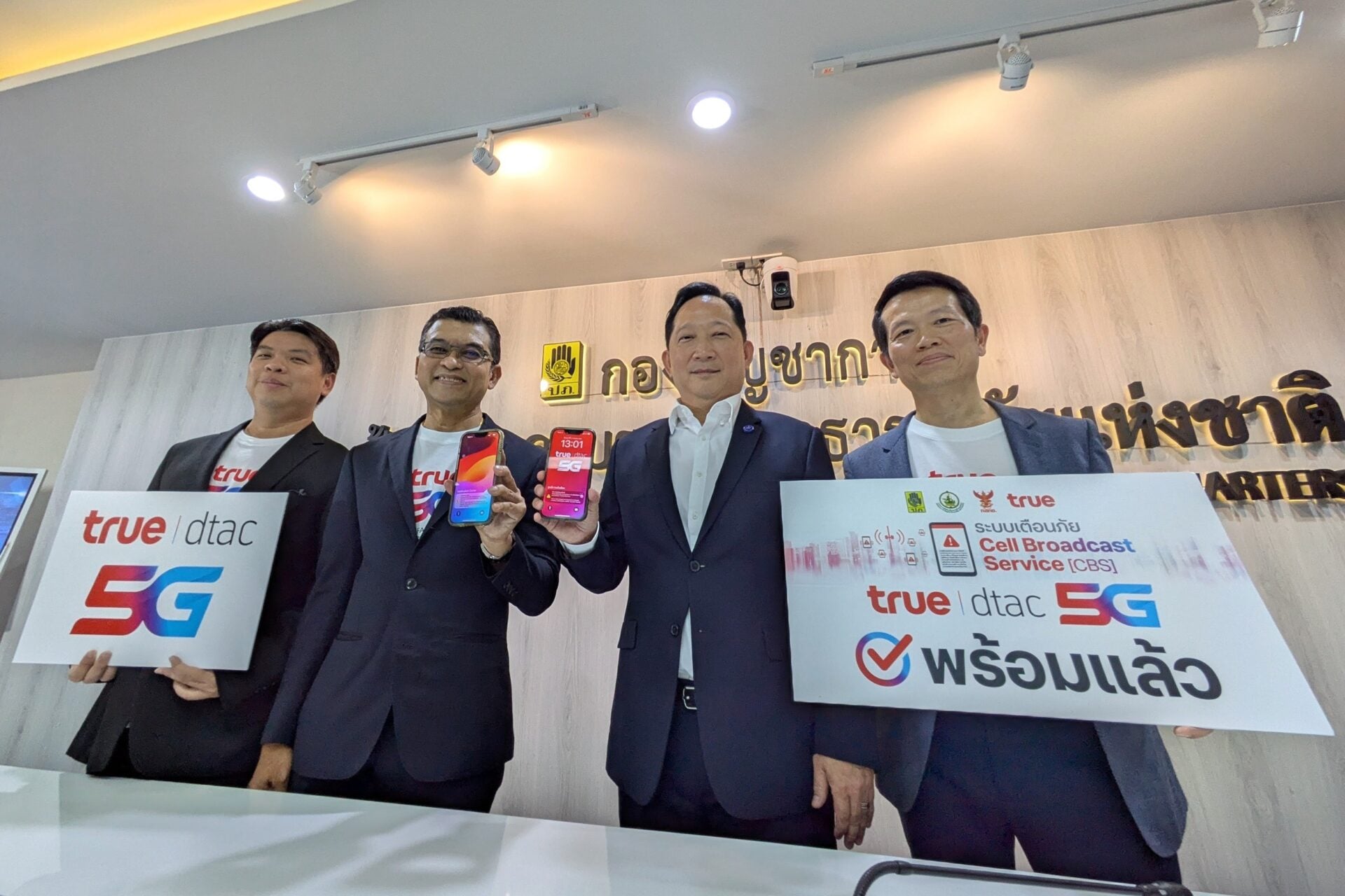 2 พฤษภาคม 2568 – ทรู คอร์ปอเรชั่น ร่วมกับ กรมป้องกันและบรรเทาสาธารณภัย (ปภ.) ประสบความสำเร็จในการทดสอบระบบแจ้งเตือนภัยแบบเซลล์บรอดแคสต์ (Cell Broadcast Service) เต็มรูปแบบระดับเล็กเป็นครั้งแรกของประเทศไทย โดยครอบคลุมพื้นที่ทดสอบ 5 จังหวัดทั่วประเทศ ที่ศาลากลางจังหวัดเชียงราย จังหวัดสุพรรณบุรี จังหวัดอุบลราชธานี จังหวัดสงขลา และ กรุงเทพฯ ที่ อาคารศูนย์ราชการฯ แจ้งวัฒนะ (อาคาร A, B) สร้างมิติใหม่ด้านความปลอดภัยที่พร้อมในการส่งข้อความแจ้งเตือนภัยไปยังโทรศัพท์มือถือของประชาชนคนไทย และนักท่องเที่ยวต่างชาติในพื้นที่ประสบภัยโดยตรงในทันที