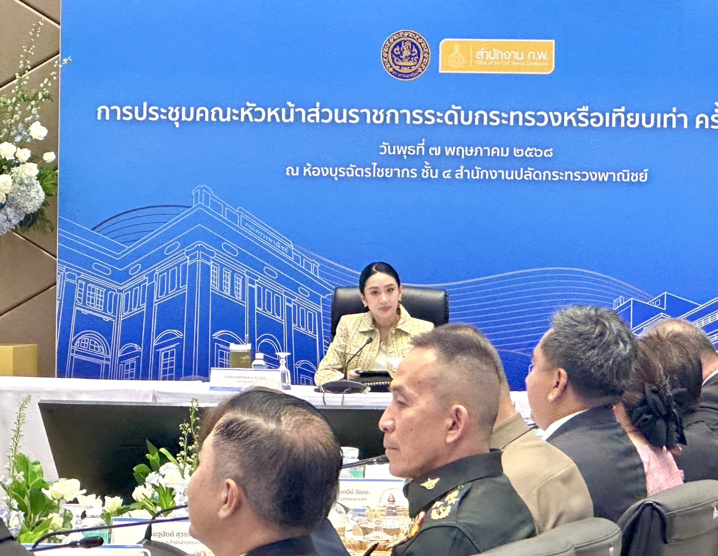 07 พ.ค.2568 - ที่กระทรวงพาณิชย์ น.ส.แพทองธาร ชินวัตร นายกรัฐมนตรี เป็นประธานการประชุมหัวหน้าส่วนราชการระดับกระทรวงหรือเทียบเท่า มีนายพิชัย นริพทะพันธุ์ รมว.พาณิชย์ นายนภินทร ศรีสรรพางค์ รมช.พาณิชย์ และนายสุชาติ ชมกลิ่น รมช.พาณิชย์ ให้การต้อนรับ ทั้งนี้ในการประชุมมีปลัดกระทรวงและหัวหน้าส่วนราชการ เข้าร่วมประชุมอย่างพร้อมเพรียง