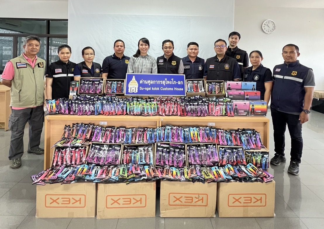 สำนักงานศุลกากรภาคที่ 4 ด่านศุลกากรสงขลา และด่านศุลกากรท่าอากาศยานหาดใหญ่ ตรวจค้นพัสดุในบริษัทขนส่งเอกชนในพื้นที่จังหวัดสงขลา พบบุหรี่ไฟฟ้าและอุปกรณ์ จำนวน 22,136 ชิ้น มูลค่า 6,927,000 บาท ด่านศุลกากรสุไหงโก-ลก ได้ออกลาดตระเวนในพื้นที่ความรับผิดชอบของด่านฯ