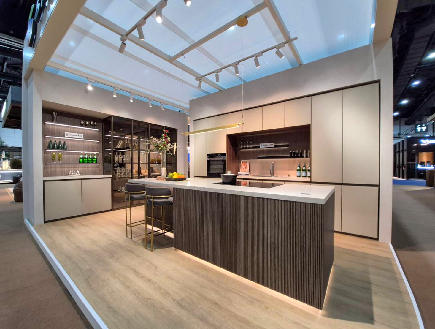 โดยในปี 2568 นี้ สตาร์มาร์ค จะตอกย้ำความเป็นแบรนด์ชั้นนำ ด้วยการอวดโฉม Infinite Kitchen Design ชุดครัวสไตล์โมเดิร์น รุ่น ARLANDO (ออแลนโด้) ดีไซน์เหนือระดับและเรียบหรู สไตล์การออกแบบอย่างไม่มีที่สิ้นสุดจากทางสตาร์มาร์ค ผสานความเรียบง่ายและความล้ำสมัยเข้าด้วยกัน จุดเด่นคือ Island ครัวยาว 3 เมตร ปิดผิวลามิเนตลายไม้ Umber Oregon Teak ที่เซาะร่อง เผยให้เห็นแกนไม้สีดำ และตู้กระจกใสสีชาทองรอบตัวเพิ่มความโปร่งโล่ง พร้อมอุปกรณ์อำนวยความสะดวกในการใช้งาน อาทิ Automatic Power Plug และ Wireless Charger ที่ฝังบนเคาน์เตอร์ท้อปหินควอทซ์ที่ดูแลรักษาง่าย ทนต่อรอยขีดข่วน หน้าบานผลิตด้วยกระจกซาตินพ่นทราย คลุมด้วยโทนสี Copper Gold และ Dark Beige ที่เพิ่มความหรูหราให้ครัวอย่างล้ำลึก
