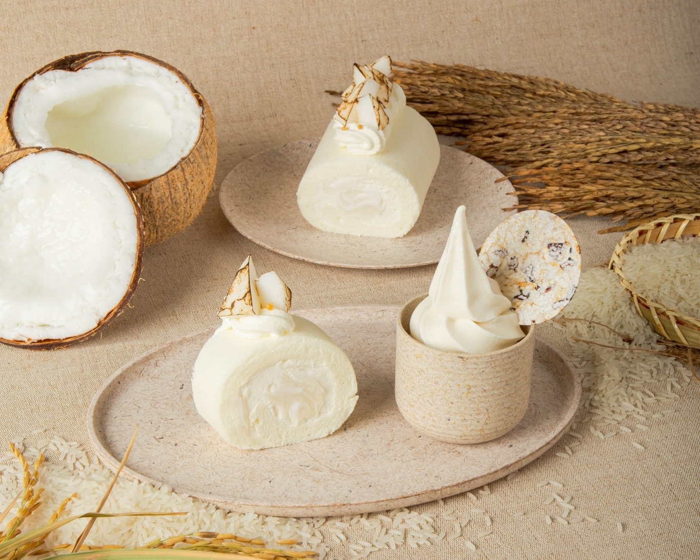 สำหรับการเลือกวัตถุดิบ เพื่อมาทำเมนูของหวานและเครื่องดื่มให้กับแบรนด์นั้น เดช กล่าวว่า ได้คัดเลือกข้าวสายพันธุ์พิเศษที่ขึ้นชื่อของทุกจังหวัดกว่า 20 สายพันธุ์ โดยผ่านการคัดเลือกมา 6 สายพันธุ์ อาทิ ข้าวหอมมะลิทั้งขาวและแดง ข้าวสังข์หยด จากทะเลน้อย จังหวัดพัทลุง เพื่อนำมาทำไอศกรีมและชานมรส Signature ข้าวบือกี และข้าวบือซากอ พันธุ์พื้นถิ่นของชาวปกาเกอะญอ จากจังหวัดเชียงใหม่ นำมาทำข้าวเกรียบสดๆ รวมถึงช็อกโกแลตไทยจากเชียงใหม่ และกาแฟไร่ดอยมณีพฤกษ์จากน่าน ปลูกโดยชาวม้งที่พลิกฟื้นไร่เลื่อยลอยให้กลายเป็นไร่กาแฟสุดยอดของไทย หรือมัทฉะไทย ที่ทำมาจากต้นข้าวอ่อน ชาเปลือกกาแฟจากจังหวัดเลย รวมถึงสมุนไพรและผลไม้หายาก มาผสานในกว่า 20 เมนู เพื่อสนับสนุนเกษตรกรไทย