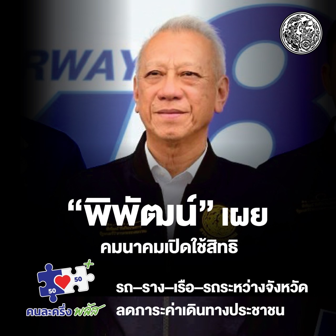 29 ต.ค.2568-นายพิพัฒน์ รัชกิจประการ รองนายกรัฐมนตรี และรัฐมนตรีว่าการกระทรวงคมนาคม เปิดเผยว่า กระทรวงคมนาคมได้ดำเนินการตามนโยบายของรัฐบาลภายใต้การนำของนาย อนุทิน ชาญวีรกูล นายกรัฐมนตรี ที่มุ่งช่วยเหลือประชาชนในการลดภาระค่าครองชีพและเพิ่มกำลังซื้อ ผ่านโครงการ คนละครึ่ง พลัสซึ่งเป็นมาตรการสำคัญเพื่อขับเคลื่อนเศรษฐกิจฐานรากให้เดินหน้าควบคู่กับการพัฒนาระบบคมนาคมขนส่งสาธารณะของประเทศ