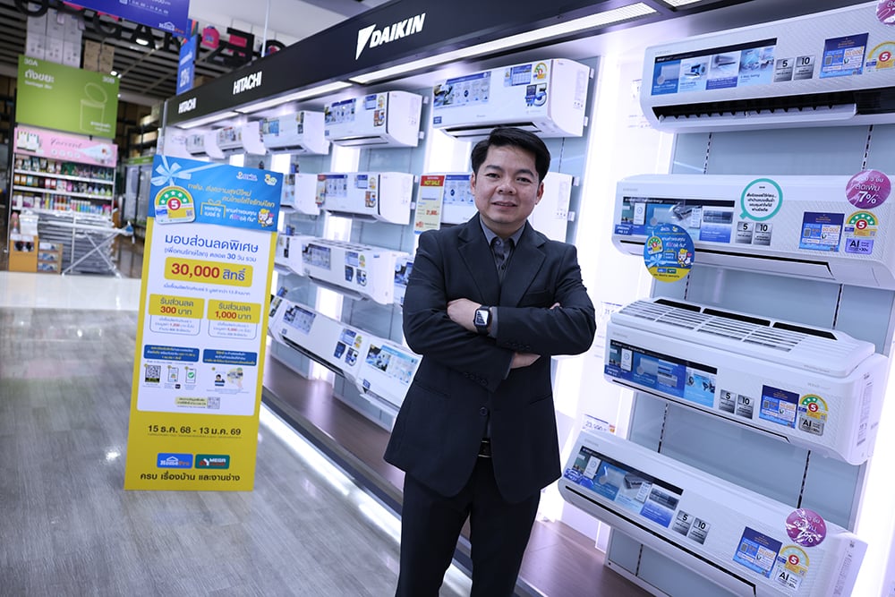 15 ธ.ค. 2568 – นายชาญชัย ชัยถาวรกิจ ผู้ช่วยกรรมการผู้จัดการ กลุ่มงาน B2B บริษัท โฮม โปรดักส์ เซ็นเตอร์ จำกัด (มหาชน) หรือ “โฮมโปร” กล่าวว่า “หลายปีที่ผ่านมา โฮมโปรและเมกาโฮม มุ่งมั่นผลักดันแนวคิด “บ้านประหยัดพลังงาน” อย่างต่อเนื่อง เราเชื่อว่า การดูแลโลกเริ่มต้นได้ง่ายๆ จากภายในบ้าน การมอบของขวัญปีใหม่นี้ จึงไม่ใช่เพียงของขวัญที่มีคุณค่าทางใจ แต่คือการส่งมอบคุณภาพชีวิตคนไทยให้ดีขึ้นในระยะยาว ความร่วมมือกับ กฟผ. ครั้งนี้ เป็นอีกก้าวสำคัญในการร่วมกันขับเคลื่อนสังคมไทย สู่การใช้พลังงานอย่างมีประสิทธิภาพ ด้วยการส่งมอบของขวัญที่จะช่วยเติมเต็มการรักษ์โลกใบนี้ ผ่านการชวนให้ลูกค้าเลือกเครื่องใช้ไฟฟ้าเบอร์ 5 ที่คุ้มค่าทั้งค่าไฟในบ้าน และช่วยลดการใช้ทรัพยากรไปพร้อมกัน”