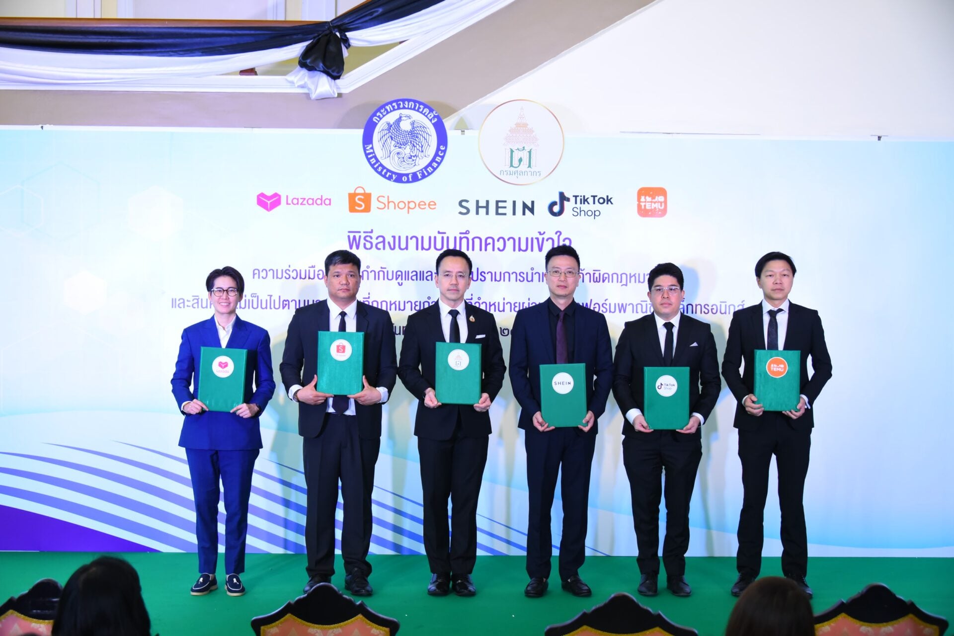 22 ธ.ค. 2568 – นายพันธ์ทอง ลอยกุลนันท์ อธิบดีกรมศุลกากร กล่าวภายหลังพิธีลงนามบันทึกความเข้าใจ (MOU) ความร่วมมือในการกำกับดูแลและปราบปรามการนำเข้าสินค้าผิดกฎหมายและสินค้าที่ไม่เป็นไปตามมาตรฐานที่กฎหมายกำหนด ร่วมกับ 5 แพลตฟอร์มออนไลน์ ได้แก่ บริษัท ลาซาด้า จำกัด, บริษัท ช้อปปี้ (ประเทศไทย), บริษัท ติ๊กต็อก ช้อป (ประเทศไทย), SHEIN และ TEMU ว่า กรอบความร่วมมือครั้งนี้ มีวัตถะประสงค์ 3 มิติ ได้แก่
