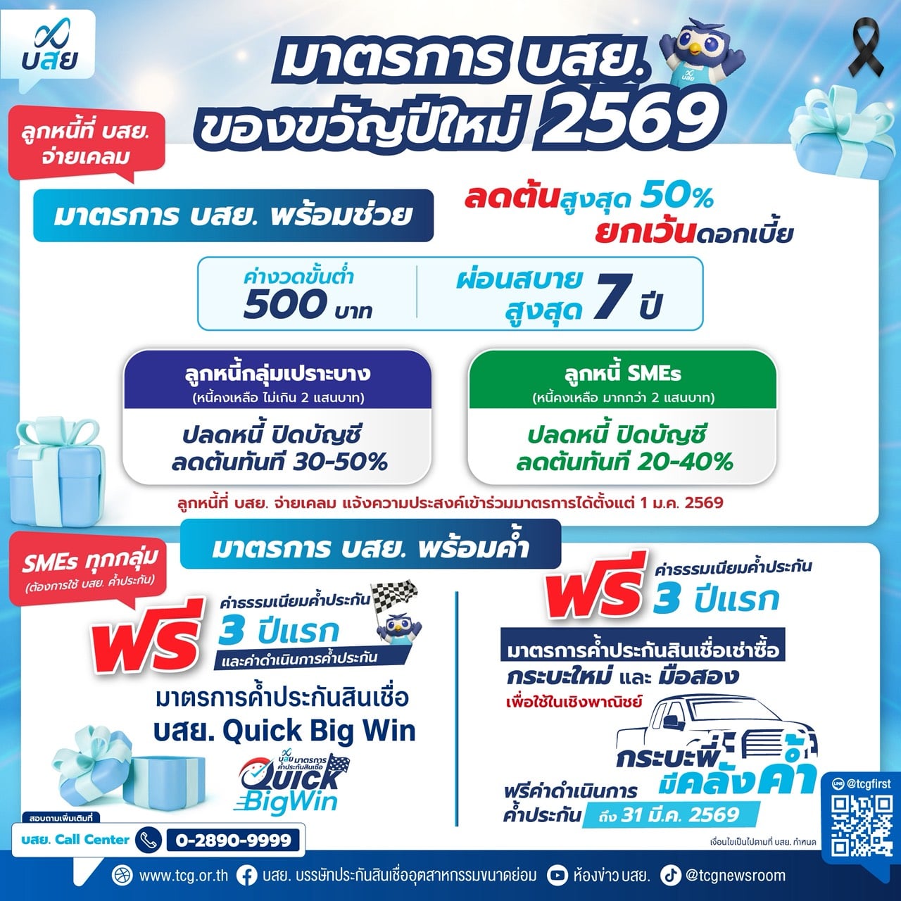 บสย. มอบของขวัญปีใหม่ 2569 ‘พร้อมค้ำ-พร้อมช่วย’ ฟรี!! ค่าธรรมเนียมค้ำฯ 3 ปีแรก เดินหน้าแก้หนี้ SMEs กลุ่มเปราะบาง ลดเงินต้นสูงสุด 50% ปลอดดอกเบี้ย