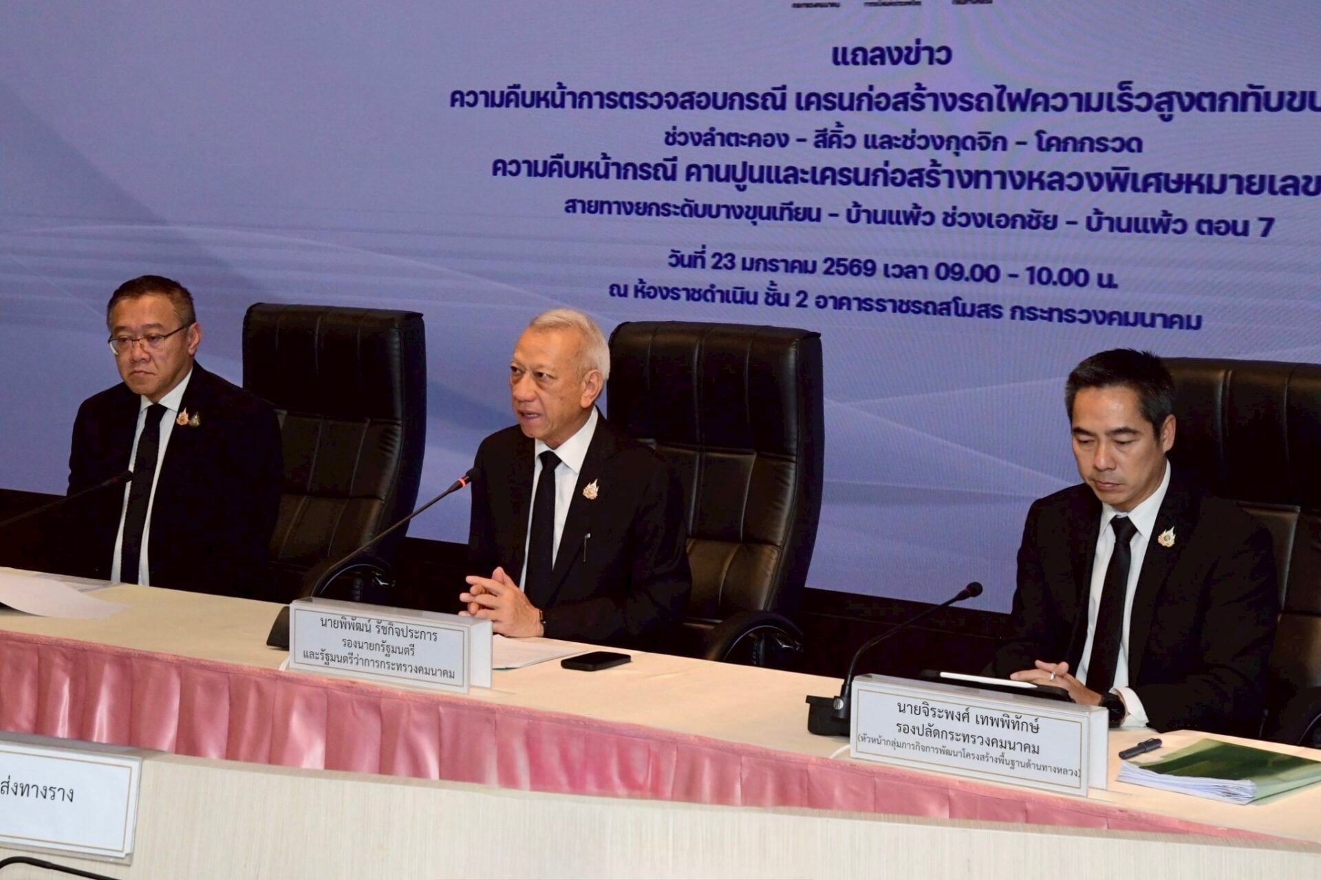 23 ม.ค. 2569-นายพิพัฒน์ รัชกิจประการ รองนายกรัฐมนตรีและ รมว.คมนาคม เปิดเผยว่า จากเหตุการณ์กรณีเครนก่อสร้างโครงการรถไฟความเร็วสูง (ไฮสปีดไทย-จีน)ในสัญญา 3-4 ช่วงลำตะคอง-สีคิ้วของ และโครงการทางหลวงพิเศษระหว่างเมือง (มอเตอร์เวย์) บางขุนเทียน-บ้านแพ้ว ตอน7 บนถนนพระราม 2 ถล่มลงมา นั้น สำหรับบทลงโทษต่อคู่สัญญายืนยันว่า ตามข้อสั่งการของนายอนุทิน ชาญวีรกูล นายกรัฐมนตรีที่เน้นย้ำให้หาผู้รับผิดชอบอย่างถึงที่สุด เนื่องจาก รฟท. เป็นหน่วยงานรัฐวิสาหกิจ อำนาจการบอกเลิกสัญญาจึงเป็นของคณะกรรมการ (บอร์ด) โดยรฟท.เตรียมนำเรื่องเข้าสู่การพิจารณาของคณะอนุกรรมการด้านกฎหมาย และเสนอต่อที่ประชุมคณะกรรมการ (บอร์ด) รฟท. ในวันที่ 29 มกราคมนี้ เพื่อพิจารณาข้อสรุปในการยกเลิกสัญญากับบริษัท อิตาเลียนไทยฯ
