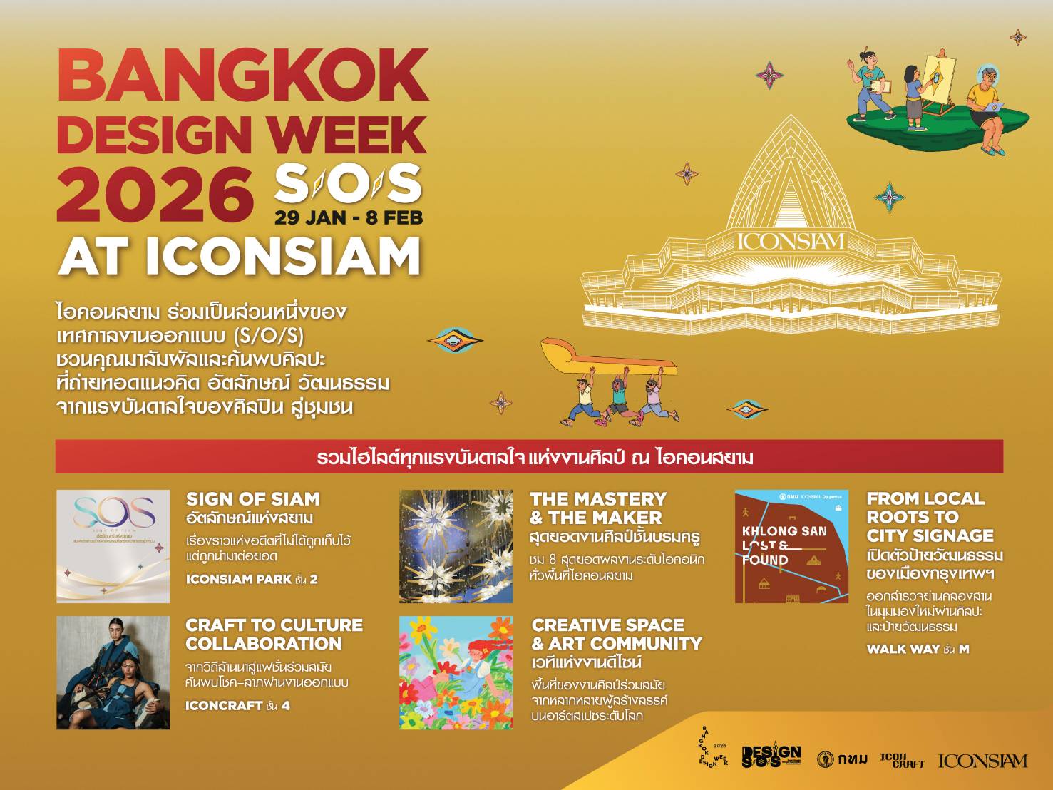 ไอคอนสยาม หนึ่งในพื้นที่จัดแสดงผลงานสร้างสรรค์และการออกแบบของกลุ่มบริษัทสยามพิววรธน์ ใน Bangkok Design Week 2026 ได้ร่วมกับกรุงเทพมหานครและเครือข่ายพันธมิตร เดินหน้าสร้างประสบการณ์เหนือระดับ เป็น Global Experiential Destination ขับเคลื่อนพลังความคิดสร้างสรรค์ภายใต้แนวคิด DESIGN S/O/S: Secure Domestic / Outreach Opportunities / Sustainable Future เปิดพื้นที่แห่งแรงบันดาลใจ ที่ผสานงานออกแบบ ศิลปะ วัฒนธรรม ชุมชน และความยั่งยืน เข้าไว้ด้วยกันในหลากหลายมิติ ถ่ายทอดอัตลักษณ์ของย่านริมแม่น้ำเจ้าพระยาที่เปี่ยมด้วยเรื่องราว ผ่านประสบการณ์สร้างสรรค์ที่เข้าถึงได้สำหรับทุกคน