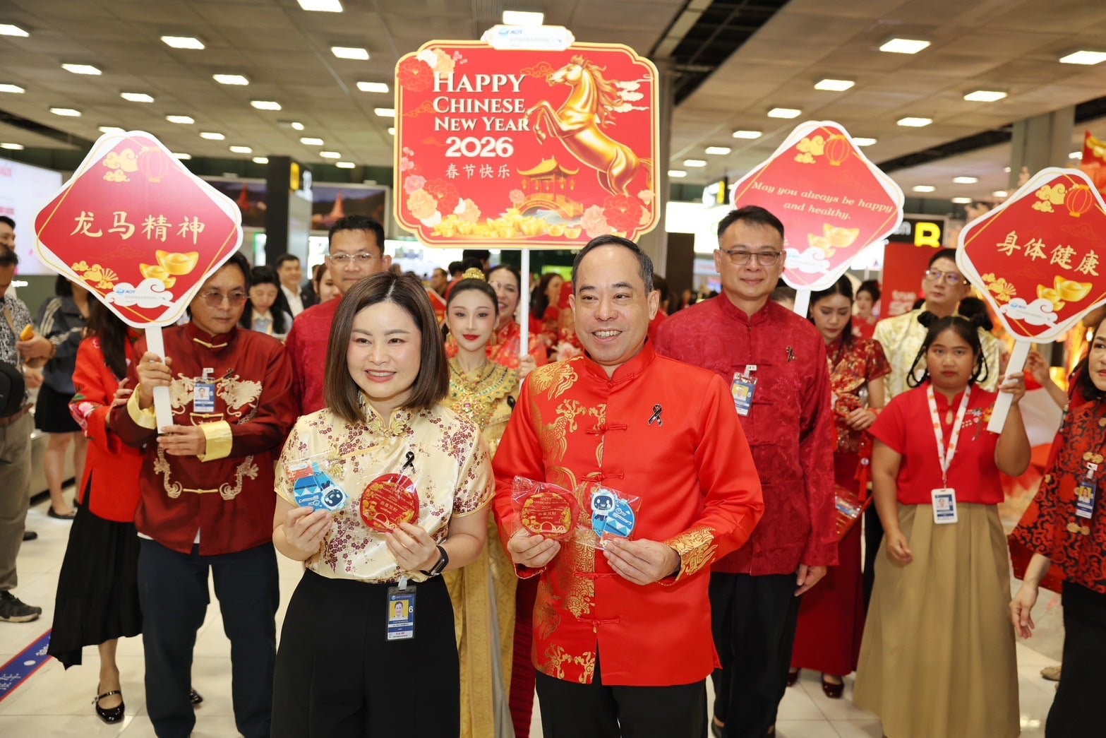 17 ก.พ.2569-นางสาวปวีณา จริยฐิติพงศ์ กรรมการผู้อำนวยการใหญ่ บริษัท ท่าอากาศยานไทย จำกัด (มหาชน) หรือ ทอท. เปิดเผยว่า บริษัทได้ร่วมจัดกิจกรรมต้อนรับผู้โดยสารเนื่องในเทศกาลตรุษจีน ประจำปี 2569 โดยกิจกรรมจัดขึ้นบริเวณซุ้มถ่ายภาพเทศกาลตรุษจีน ณ สายพานรับกระเป๋าหมายเลข 11–12 ชั้น 2 อาคารผู้โดยสาร โดยมีการมอบของที่ระลึกพร้อมคำอวยพรปีใหม่จีนแก่ผู้โดยสารที่เดินทางมาถึง นอกจากนี้ยังจัดการแสดงชุด “มิตรภาพไทย–จีน” สร้างสีสันและบรรยากาศอันเป็นสิริมงคล ต้อนรับผู้โดยสารตั้งแต่วินาทีแรกที่ก้าวสู่ประเทศไทย และตอกย้ำความตั้งใจของท่าอากาศยานสุวรรณภูมิในการมอบประสบการณ์ต้อนรับที่น่าประทับใจในช่วงเทศกาลสำคัญ