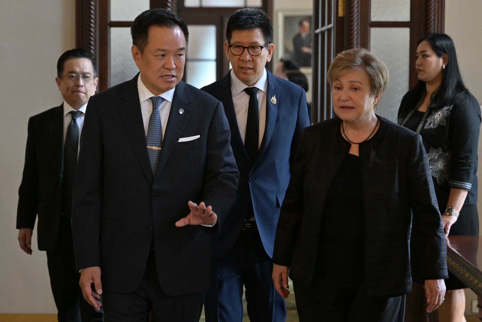 05 มี.ค.2569 - ที่ห้องทำงานชั้น 2 ตึกไทยคู่ฟ้า ทำเนียบรัฐบาล นายเอกนิติ นิติทัณฑ์ประภาศ รองนายกรัฐมนตรีและรัฐมนตรีว่าการกระทรวงการคลัง นำนางคริสตาลินา กอร์เกียวา (Ms. Kristalina Georgieva) กรรมการจัดการกองทุนการเงินระหว่างประเทศ (International Monetary Fund: IMF) เข้าเยี่ยมคารวะ นายอนุทิน ชาญวีรกูล นายกรัฐมนตรีและรัฐมนตรีว่าการกระทรวงมหาดไทย ในโอกาสเดินทางเยือนประเทศไทย เพื่อติดตามความคืบหน้าการเตรียมความพร้อมการเป็นเจ้าภาพการประชุมประจำปีสภาผู้ว่าการกองทุนการเงินระหว่างประเทศและกลุ่มธนาคารโลก ปี 2569 (IMF–World Bank Group Annual Meetings 2026) ซึ่งประเทศไทยจะเป็นเจ้าภาพระหว่างวันที่ 12–18 ตุลาคม 2569 ณ ศูนย์การประชุมแห่งชาติสิริกิติ์