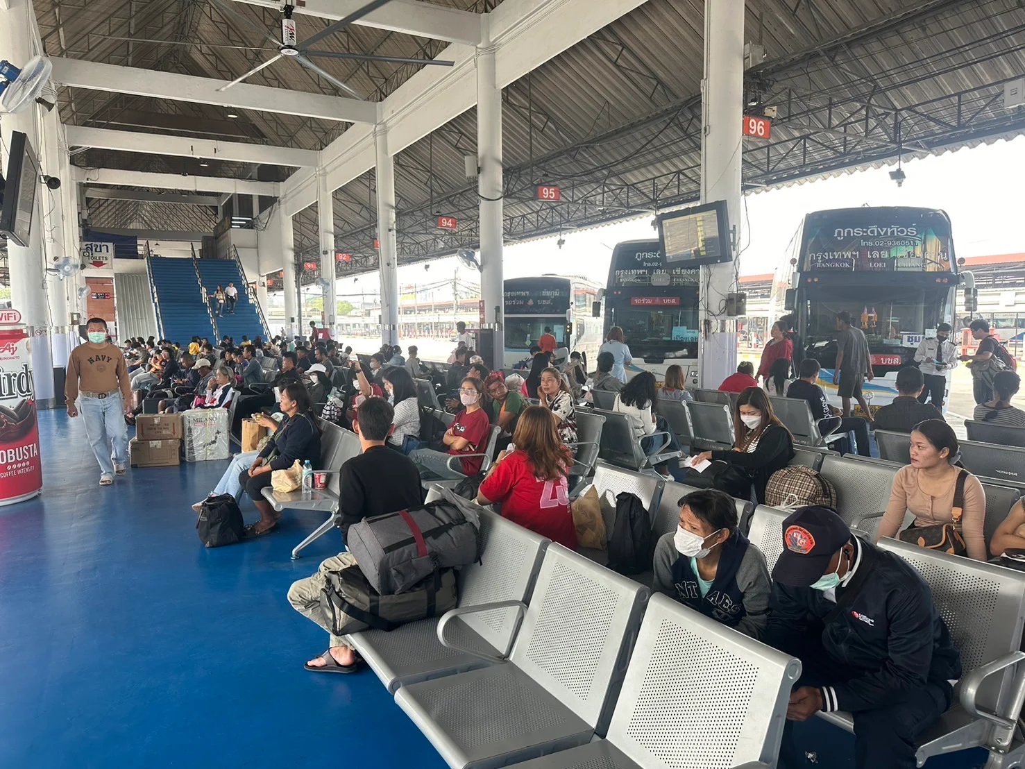 สำหรับเที่ยวกลับวันที่ 16 – 19 เม.ย. คาดว่ามีผู้โดยสารวันละ 1.2 แสนคน ใช้รถโดยสาร (รถบริษัทฯ และรถร่วม) วันละ 6,000 เที่ยว นอกจากนี้ได้เตรียมรถโดยสารไม่ประจำทาง (รถทะเบียน 30) หรือรถเสริม 1,200 คัน จากเดิมทุกปีเตรียมไว้ประมาณ 1,000 คัน เพื่อให้เพียงพอต่อความต้องการ และไม่มีผู้โดยสารตกค้าง รองรับผู้โดยสารได้ประมาณ 1.8 แสนคนต่อวัน เบื้องต้นคาดว่าวันที่ 11 เม.ย.2569 จะมีผู้โดยสารสูงสุด 1.6 แสนคน