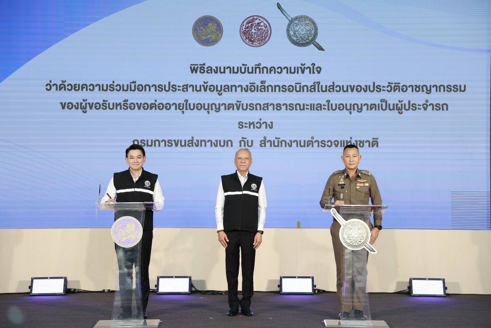 นอกจากนี้ ได้เป็นประธานในพิธีลงนามบันทึกความเข้าใจระหว่างกรมการขนส่งทางบกกับสำนักงานตำรวจแห่งชาติ ว่าด้วยความร่วมมือในการเชื่อมโยงข้อมูลประวัติอาชญากรรมของผู้ขอรับหรือขอต่ออายุใบอนุญาตขับรถสาธารณะและผู้ประจำรถ ผ่านระบบอิเล็กทรอนิกส์ เพื่อเพิ่มประสิทธิภาพการคัดกรอง ลดขั้นตอน และยกระดับความปลอดภัยของผู้โดยสาร