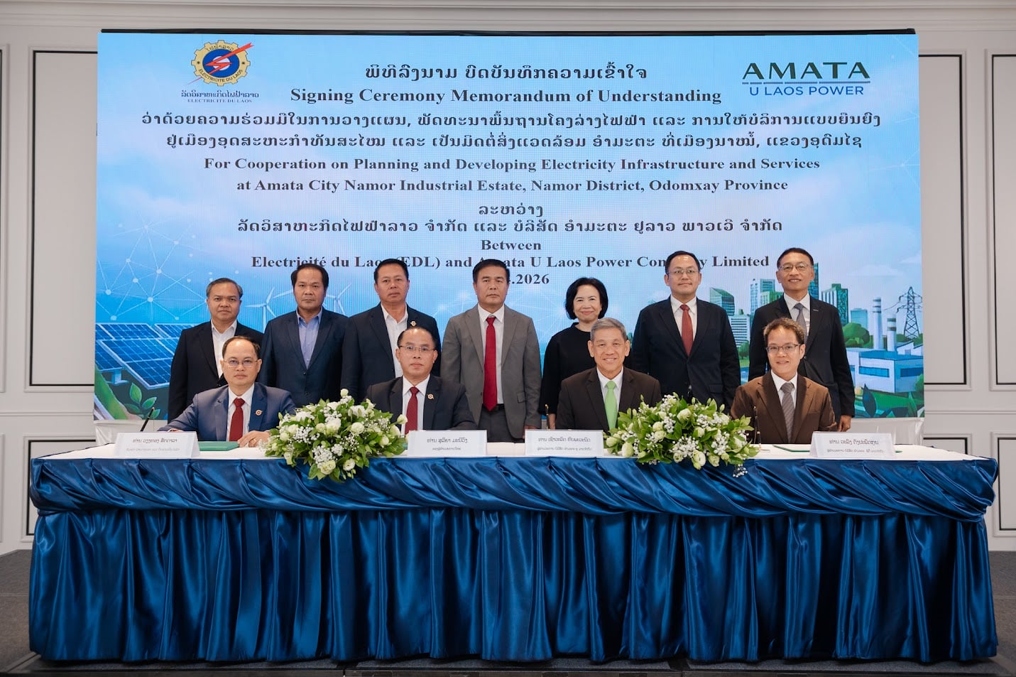 ‘อมตะ ยู’ ผนึกกำลัง รัฐวิสาหกิจไฟฟ้าลาว MOU พัฒนาโครงข่ายพลังงานอัจฉริยะ ‘Amata Smart & Eco City’ เมืองนาหม้อ รองรับดีมานด์ไฟฟ้า 300–400 เมกะวัตต์ ชูโมเดลเมืองอุตสาหกรรมแบบครบวงจร ปักหมุดลาวเหนือสู่ศูนย์กลางการลงทุนใหม่ของภูมิภาค