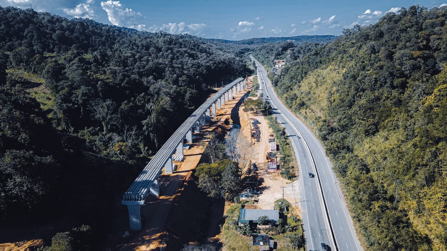 สำหรับโครงการฯดังกล่าว แบ่งสัญญาก่อสร้างออกเป็น 3 สัญญา ประกอบด้วยสัญญาที่ 1 ช่วงเด่นชัย–งาว มีความคืบหน้าผลงานก่อสร้างสะสม 59.227% ขณะที่แผนงานอยู่ที่ 64.937% ล่าช้ากว่าแผน -5.710% เนื่องจากเป็นช่วงที่ได้รับผลกระทบจากอุทกภัย และมีลักษณะภูมิประเทศซับซ้อน รฟท.ได้ติดตามสถานการณ์เร่งรัดการดำเนินงานเพิ่มเติมเพื่อดึงภาพรวมให้กลับเข้าสู่แผน สัญญาที่ 2 ช่วงงาว–เชียงราย มีผลงานก่อสร้างสะสม 63.157% สูงกว่าแผนที่ 59.853% เร็วกว่าแผน +3.304% และสัญญาที่ 3 ช่วงเชียงราย–เชียงของ มีความคืบหน้าสะสม 55.064% แผนงานสะสม 51.364% เร็วกว่าแผน +3.700% โดยเป็นช่วงสำคัญในการเชื่อมต่อระบบรางสู่พื้นที่ชายแดน เพื่อรองรับการขนส่งและการค้าชายแดนในอนาคต