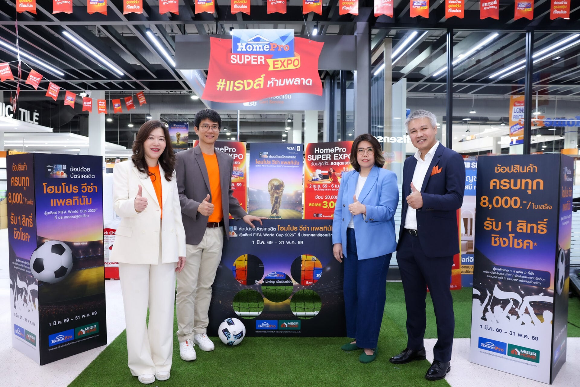 โฮมโปร เดินเกมรุกปลุกกำลังซื้อ เปิดตัวแคมเปญสุดเอ็กซ์คลูซีฟสำหรับผู้ถือบัตรเครดิต ‘โฮมโปร วีซ่า แพลทินัม’ เปลี่ยนทุกยอดช้อป… ให้กลายเป็นโมเมนต์ระดับโลกเพียงช้อปสินค้าที่โฮมโปร และเมกาโฮม ครบทุก 8,000 บาทต่อใบเสร็จ รับ 1 สิทธิ์ชิงโชค ลุ้นบินลัดฟ้าไปเชียร์การแข่งขัน FIFA World Cup 2026 ติดขอบสนาม