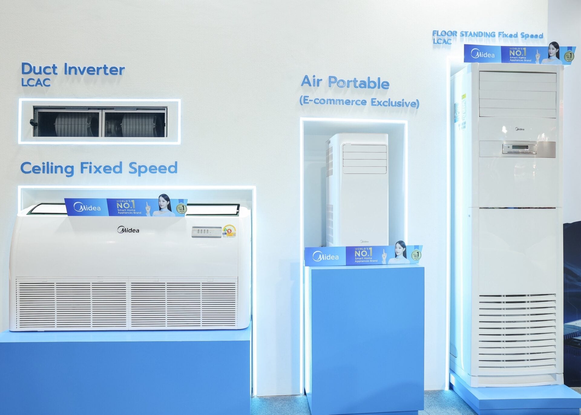 นอกจากนี้ ไมเดียมีผลิตภัณฑ์เครื่องปรับอากาศครอบคลุม ทั้งแอร์ติดผนังสำหรับที่อยู่อาศัย รวมถึงระบบแอร์เชิงพาณิชย์และอาคารขนาดใหญ่ พร้อมการรับประกันที่สร้างความมั่นใจให้ผู้บริโภค มาจัดแสดงเป็นจำนวนมาก อาทิ รุ่นเด่นอย่าง mPro Easy Inverter ที่มาพร้อม Air magic เทคโนโลยีแผ่นกรอง 2 ชั้น เพื่ออากาศที่บริสุทธิ์ สดชื่น หรือ Numen Series, Celest Series ที่มาพร้อมเทคโนโลยี Smart Control สั่งงานผ่าน Wi-Fi และระบบ AI ECOMASTER ช่วยประหยัดพลังงานอย่างชาญฉลาด เสริมด้วย AI Humidity Control ควบคุมความชื้นอัตโนมัติในช่วง 40%–70% RH ด้วย AI Algorithm ปรับพัดลมและกำลังความเย็นตามสภาพแวดล้อมจริงเพื่ออากาศที่สมดุลและมีเสถียรภาพ จาก Chione Series และความคุ้มค่า เย็นไวใน Tornado Easy (Fixed Speed) รวมถึงนวัตกรรมเฉพาะทางอย่าง Portable AC MPA และ One Way Cassette ที่ตอบโจทย์ทุกไลฟ์สไตล์การใช้งาน ตอกย้ำภาพผู้นำด้านเครื่องใช้ไฟฟ้าที่ผสานเทคโนโลยีล้ำสมัย ความประหยัด และดีไซน์เข้าด้วยกันอย่างลงตัว ทั้งนี้ ในการรับประกันสินค้า ถือว่าครอบคลุมทุกโซลูชัน ได้แก่
