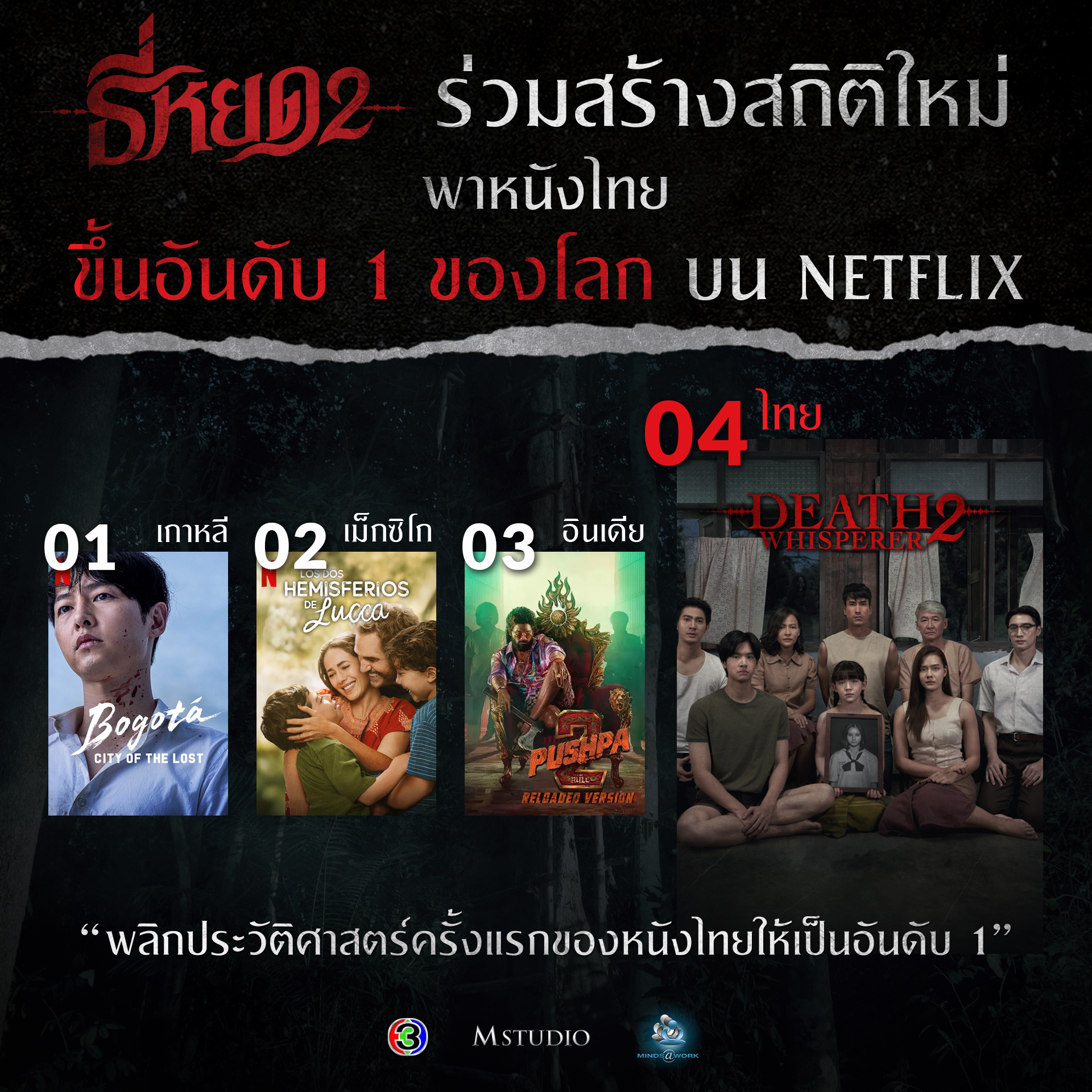 ภาพยนตร์ ธี่หยด 2 โดย M STUDIO และช่อง 3 สร้างปรากฏการณ์อีกครั้ง หลังจากกวาดรายได้จากการฉายในโรงภาพยนตร์ทั่วประเทศไทยไปได้ถึง 815 ล้านบาท ล่าสุดลงฉายในสตรีมมิ่ง Netflix มาได้ 1 สัปดาห์ ก็ขึ้นแท่นครองอันดับ 1 ของภาพยนตร์ที่มีผู้ชมสูงสุดในประเทศไทย และขึ้นอันดับ 4 ของโลก (Non-English) และยังติดอันดับ TOP 10 ในอีก 7 ประเทศทั่วโลก
