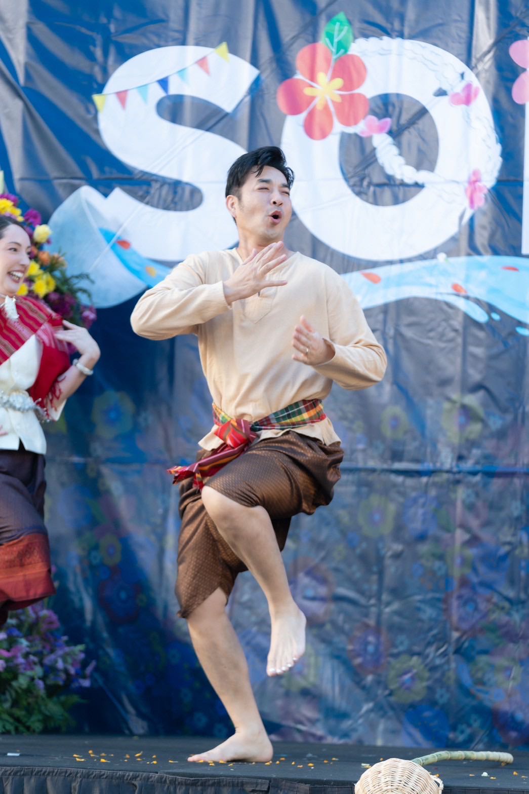 ด้าน ครูก้อย-นัชชา ลอยชูศักดิ์ ภรรยาคนสวย ก็มาในโหมดสายซัพพอร์ตยืนยิ้มให้กำลังใจข้างเวที ส่วนลูกสาวสุดน่ารักก็ขึ้นโชว์รำไทย "รำวงวันสงกรานต์" อย่างอ่อนช้อย น่าเอ็นดูไม่แพ้กัน