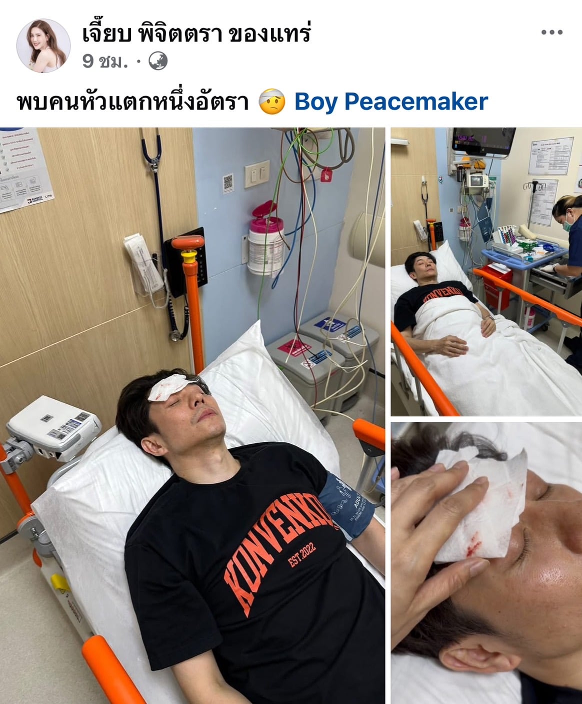 อุบัติเหตุเกิดขึ้นได้ทุกเวลาจริงๆ ล่าสุด เจี๊ยบ-พิจิตตรา สงวนศักดิ์ภักดี ได้โพสต์ภาพสามี บอย-อนุวัฒน์ สงวนศักดิ์ภักดี หรือ บอย พีซเมกเกอร์ ลงในเพจ เจี๊ยบพิจิตตราของแทร่ พร้อมระบุข้อความว่า พบคนหัวแตกหนึ่งอัตรา