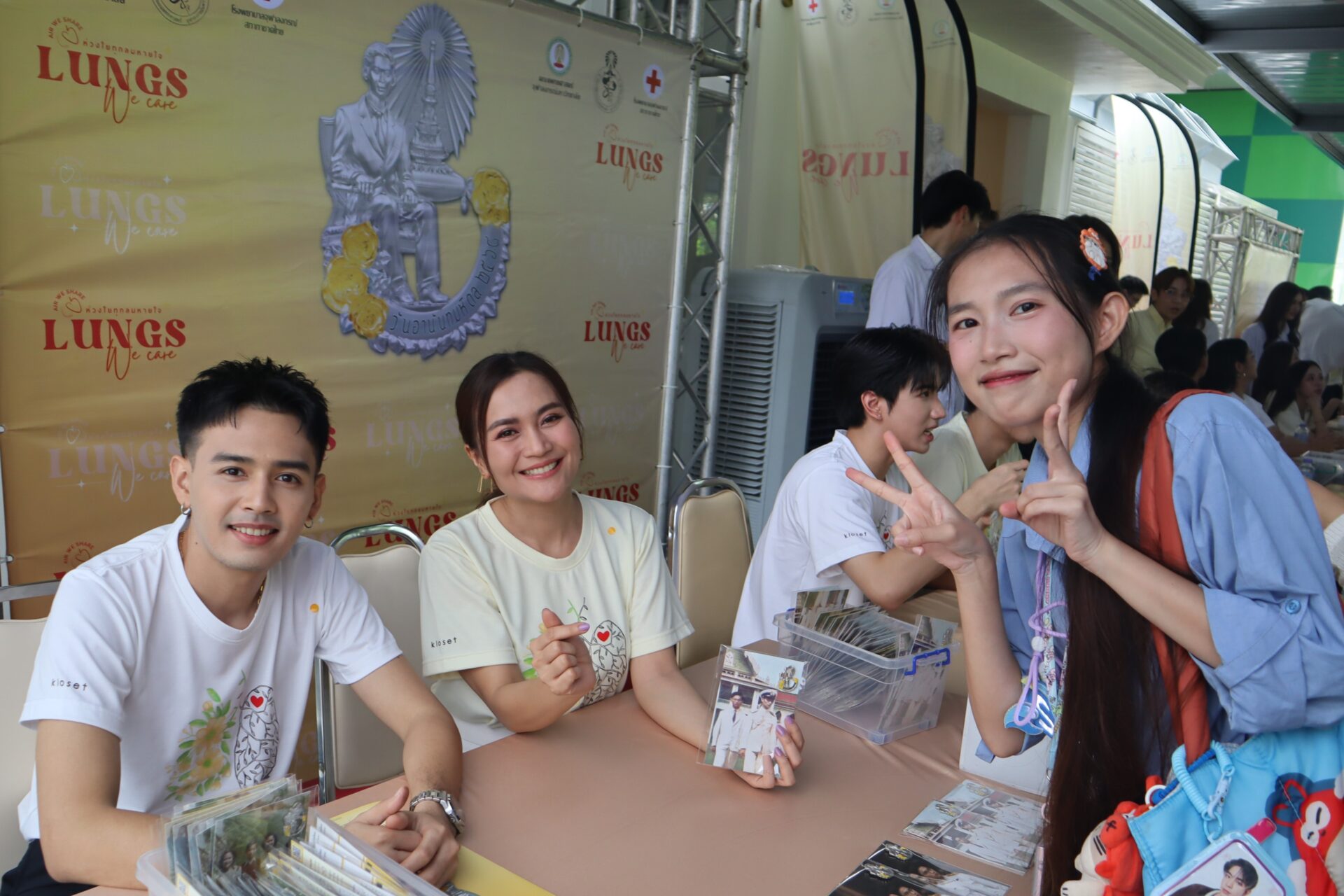 พร้อมร่วมเชิญชวนบริจาคเพื่อนำไปสมทบทุนมูลนิธิอานันทมหิดล, มูลนิธิสงเคราะห์เด็ก สภากาชาดไทย, ช่วยเหลือพระภิกษุสงฆ์อาพาธ - ผู้ป่วยยากไร้ โรงพยาบาลจุฬาลงกรณ์ สภากาชาดไทย, กิจกรรมจิตอาสา สโมสรนิสิตคณะเเพทยศาสตร์ จุฬาฯ, ภาควิชาอายุรศาสตร์ สาขาวิชาโรคระบบการหายใจและภาวะวิกฤติโรคระบบการหายใจ คณะแพทยศาสตร์ จุฬาฯ และโครงการ “Happy Home Respiratory Care” โรงพยาบาลจุฬาลงกรณ์ สภากาชาดไทย โดยมีผู้ใจบุญและแฟนคลับให้ความสนใจร่วมสนับสนุนเป็นจำนวนมาก ณ อาคารจักรพงษ์ โรงพยาบาลจุฬาลงกรณ์ สภากาชาดไทย