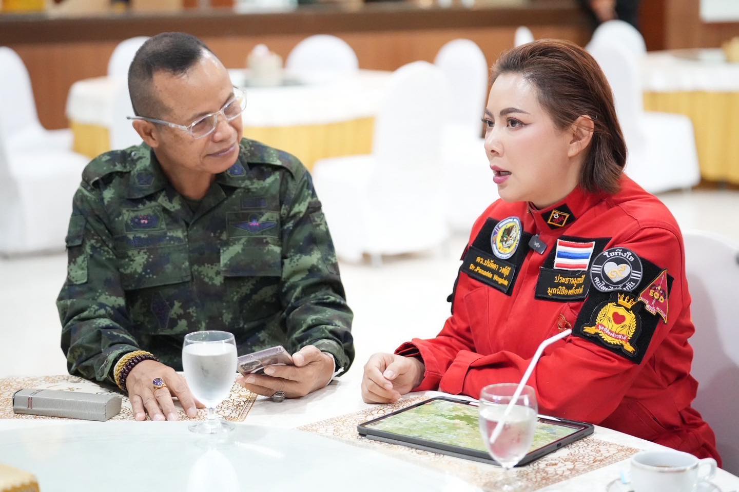 หลังจากนั้นเจ้าตัวก็ได้โพสต์ภาพที่กำลังนั่งหารือกับ รองแม่ทัพภาคที่ 2 พร้อมกับระบุข้อความว่า “วันนี้บุ๋มได้มีการพูดคุยกับทางท่าน พลตรี นรธิป โพยนอก รองแม่ทัพภาคที่ 2 รองผู้บัญชาการศูนย์ปฏิบัติการกองทัพภาคที่ 2 ถึงเรื่องแนวทางการให้ความช่วยเหลือพี่น้องประชาชนในพื้นที่แถบชายแดนหากถ้าได้รับผลกระทบอะไร ทางบุ๋มยินดีจัดศูนย์พักพิงและจัดตั้งโรงครัว ให้กับพี่น้องประชาชนในพื้นที่ค่ะ วันนี้บุ๋มได้ประชุมกับทีมงานมูลนิธิองค์กรทำดีเรียบร้อยแล้วเพื่อเตรียมตัวให้พร้อมปฎิบัติหน้าที่ ในส่วนที่เราจะช่วยเหลือพี่น้องประชาชนได้ค่ะ”