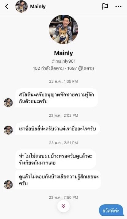ทั้งนี้ บิลลี่ เผยว่า “เรื่องของเรื่องมีคนทักมาในดีเอ็ม สวัสดีค่ะ เล่น TikTok ไหมคะ ผมก็ตอบว่าเล่น เค้าก็ถามต่อว่าตัวจริงหรือเปล่า ผมก็บอกว่าลิงค์มันอยู่ในไบโอ ในไอจีเลยครับ เค้าก็หายไปสักพักแล้วเค้าก็กลับมา แล้วเค้าก็บอกว่าเค้าโดนหลอกว่ามีคนเอารูป คลิปผมไปใช้ แล้วก็หลอกให้เขาลงทุนคือจำนวนเงิน เกือบ 100,000 เลยครับ ผมก็ตกใจมาก เค้าไปโดนหลอกมาอะไรยังไง เหมือนเค้าทำกันเป็นขบวนการเลยครับ พอใช้ Account นั้นทักไปเสร็จ ผู้เสียหายเริ่มสนใจ ที่จะลงทุนเค้าก็จะให้แอดมิน ให้คนในนั้นเข้ามาประสานงานต่อ ใช้หลาย Account ทำเป็นขบวนการเลย