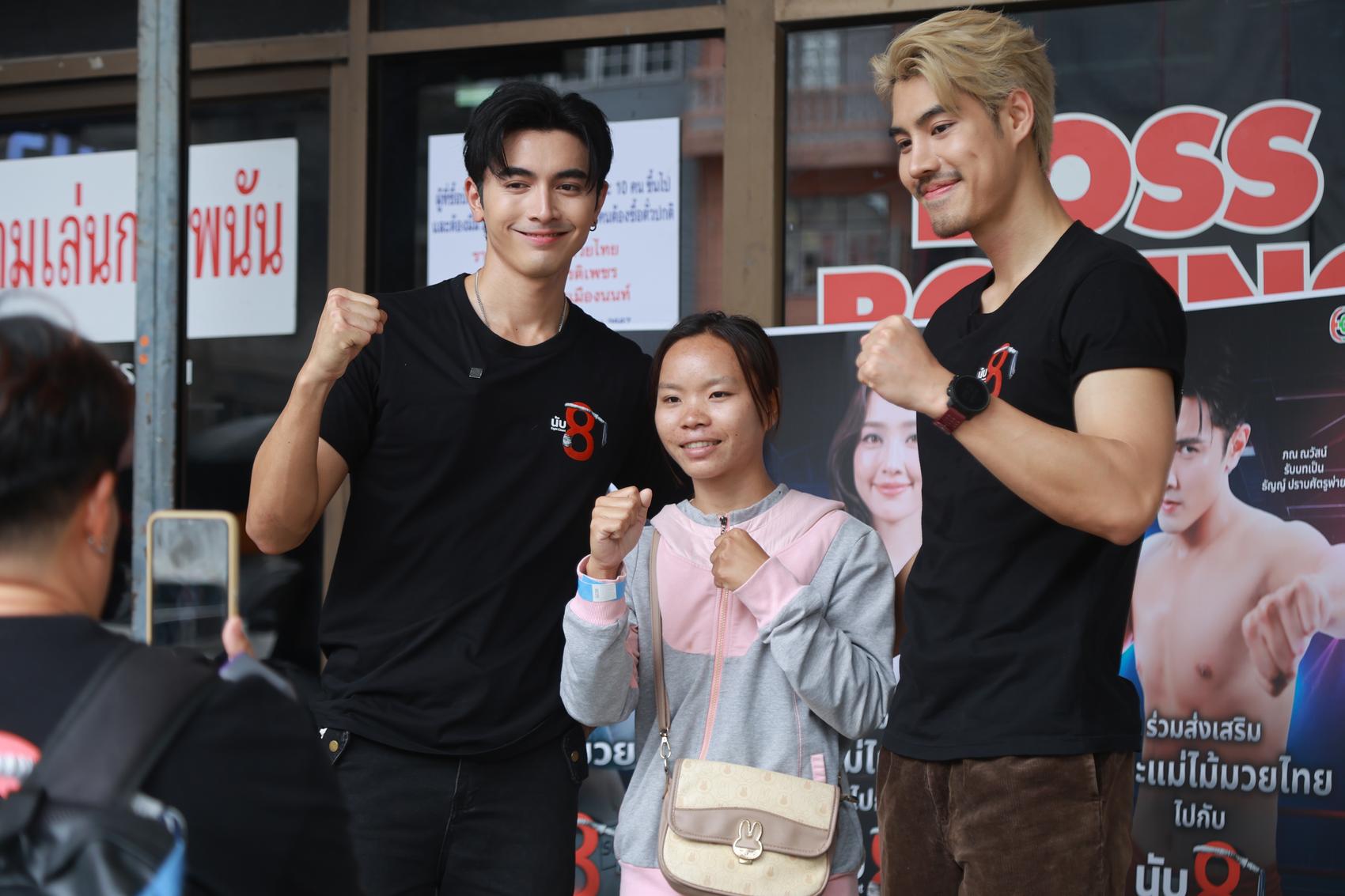 ด้าน อ๋อง เสริมต่อว่า “ได้มาอยู่ในบรรยากาศจริงแบบนี้ตื่นเต้นจริง ๆ เราแทบจะไม่ได้คุยกันเลยมัวแต่เชียร์มวย ถือว่าได้เปิดประสบการณ์อะไรใหม่ ๆ แอบคิดถึงตอนที่อยู่ในกองละคร นับ8 เหมือนกัน เพราะช่วงที่ต้องเตรียมตัวเราก็ต้องซ้อมฟิตร่างกายเหมือนนักมวยจริง ๆ”