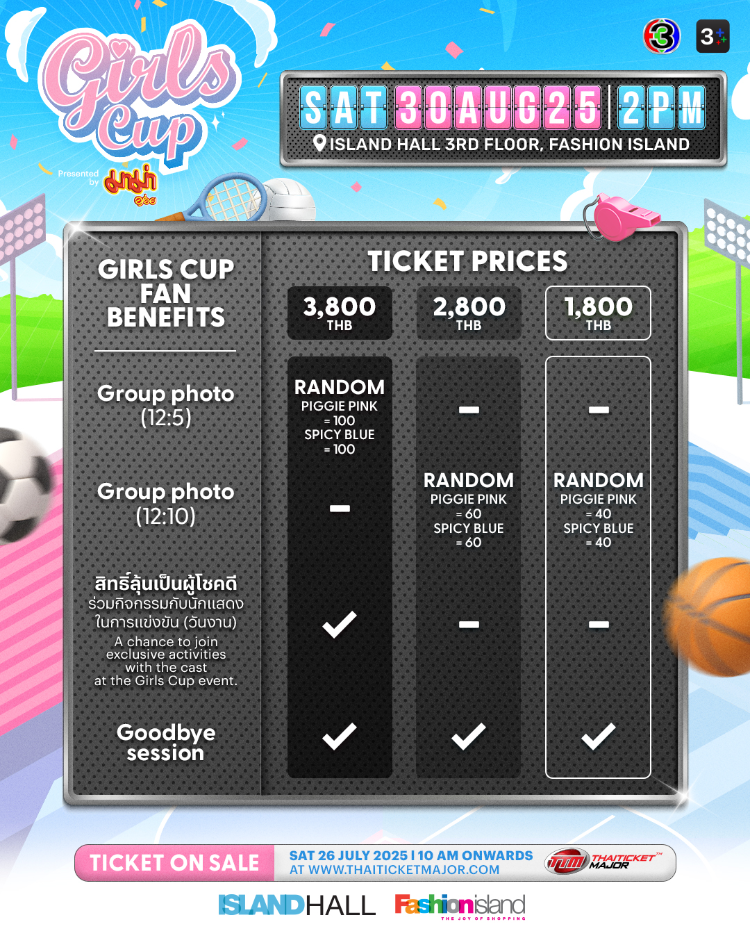 ปรากฏการณ์ครั้งใหม่ของช่อง3 เตรียมพบกับมหกรรมความสนุกสุดยิ่งใหญ่ที่แฟน ๆ รอคอยกับงาน “Girls Cup Presented by บะหมี่กึ่งสำเร็จรูปมาม่า” ที่รวมตัว 24 นักแสดงหญิงมาประชันความสามารถ และความน่ารักแบบจัดเต็มไว้ในสนามกีฬา
