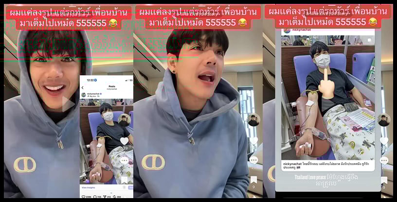 ล่าสุดเจ้าตัวโพสต์คลิปว่าหลังจากที่ลงรูปบริจาคเลือดไปนั้น ก็เจอทัวร์ประเทศเพื่อนบ้านลงยับ “มา! มีอะไรจะมาเล่าให้ฟังเอฟซี คือผมลงรูปในไอจีที่ผมไปบริจาคเลือด เพื่อเอาเลือดไปช่วยเหลือตรงชายแดน ผมแค่ตั้งแคปชั่นว่ามึงรักประเทศมึง กูก็รักประเทศกู ไม่ได้พาดพิงถึงใครเลย หลังจากนั้นมีรถทัวร์มาจอดเต็มไปหมด มาด่าผมเต็มไปหมด มาด่าไม่พอ บางคนแท็กรูปผมมาแล้วก็ชูนิ้วกลางให้ผมด้วย ดูสิ กูแค่ลงรูปไปบริจาคเลือดซึ่งเป็นสิ่งที่ดี ช่วยเหลือคนในประเทศกู แล้วกูไม่เคยว่าอะไรมึงเลยมึงยังมาด่ากูเต็มไปหมด ไปดู เอิดจริงๆไอ้พวกนี้ เอิดจริงๆ หัวครก!”
