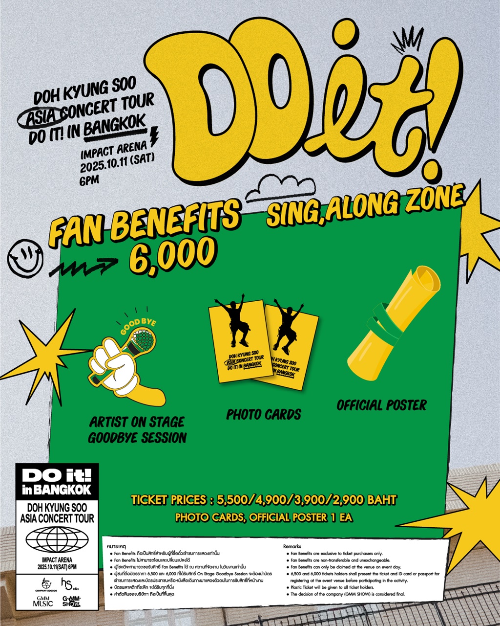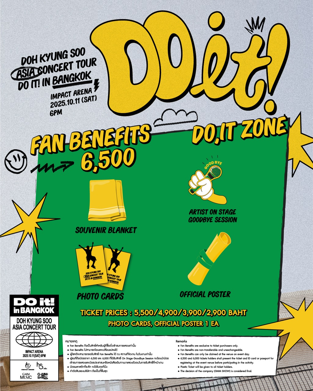 ความพิเศษทั้งหมดของงานครั้งนี้ จะได้รับการดูแลและส่งมอบไปยัง แฟนๆ ทุกคน ผ่านการทำงานด้วยความใส่ใจในทุกขั้นตอน ของ GMM SHOW (จีเอ็มเอ็ม โชว์) ซึ่งครอบคลุมตั้งแต่การเลือกสถานที่ที่รองรับคนได้จำนวนมาก ใหญ่กว่าเดิม ให้เข้ากับโชว์ที่ “คยองซู” ตั้งใจเตรียมตัวมาเป็นอย่างดี และทำให้ทุกคนสามารถมองเห็น “คยองซู” ได้อย่างชัดเจน ดื่มด่ำไปกับบรรยากาศ ตลอดจนการออกแบบโปรดักชั่นเวที แสง สี เสียง แบบจัดเต็ม เพื่อให้งานนี้กลายเป็นความทรงจำที่ดีที่สุดของทั้ง แฟนๆไทย และ “ โด คยองซู”