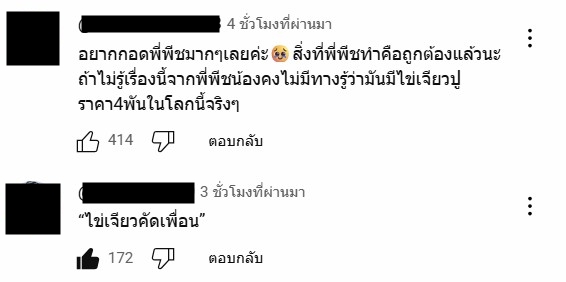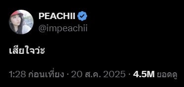 งานนี้ไม่รู้ว่าสาวพีชชี่ได้อ่านบทสัมภาษณ์ของรุ่นพี่คนสนิทจนเสียความรู้สึกหรือไม่ เพราะหลังจากนั้นไม่นานพีชชี่ก็ได้โพสต์ X (TWITTER) ว่า “เสียใจว่ะ” โดยมีแฟนๆหลายคนเข้ามาให้กำลังใจมากมายพร้อมบอกว่าดีแล้วที่ออกมาพูดเรื่องแบบนี้เพราะถือเป็นการปกป้องผู้บริโภคและเป็นกรณีศึกษาให้ร้านค้าต่างๆให้ความสำคัญกับการคิดเงินให้ตรงตามเมนูที่แจ้งไว้อย่างบริสุทธิ์ใจ และบางคอมเมนต์ถึงขั้นยกเมนูนี้ให้เป็นเมนู "ไข่เจียวคัดเพื่อน" เลยทีเดียว