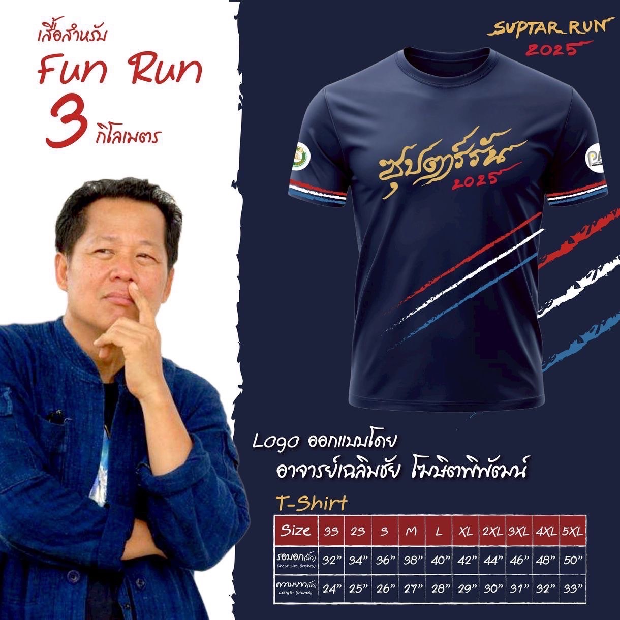 พร้อมกับชมคอนเสิร์ต และทานอาหารอร่อยด้วยกัน ใครมาก่อน ได้สนุกกันก่อน ยิ่งกว่าดาวล้านดวงอีก แค่ได้เสื้อที่ออกแบบโดยอาจารย์เฉลิมชัย โฆษิตพิพัฒน์ เป็นที่ระลึก ก็คุ้มแล้วครับ นอกจากเสื้อก็ยังมีเหรียญรางวัล และได้ทานอาหารดูคอนเสิร์ต ถ่ายรูปกับศิลปินดารามากมาย เรียกว่าฟินกันแน่นอนครับ” สำหรับผู้ที่สนใจสามารถสมัครได้ทาง https://race.thai.run/suptarrun2025 , https://race.thai.run/suptarrun2025vr , https://www.thaijogging.org/race/suptarrun2025
