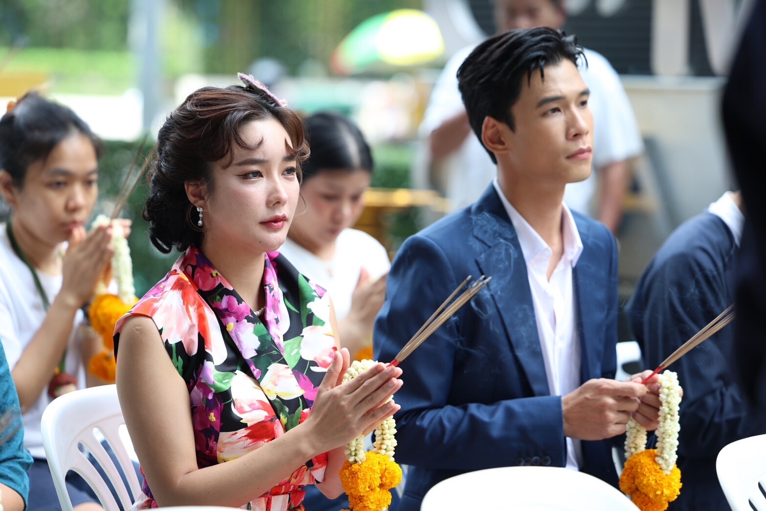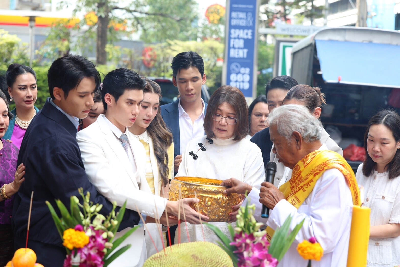 นำทีมโดยผู้จัด หนุย-สุธาสินี บุศราพันธ์ และผู้กำกับมากฝีมือ ปุ๊ย-ผอูน จันทรศิริ พร้อมด้วย 3 นักแสดงรุ่นใหม่ เพิร์ล-ศัจกร ฉลาด, พีค-ภีมพล พาณิชย์ธำรง, เพิร์ธ-วีริณฐ์ศรา ตั้งกิจสุวานิช ร่วมด้วย หญิง รฐา, ตุ๊ก ดวงตา, กิ๊ฟ วรรธนะ, พิมพ์ พิมพ์พรรณ, ดรีม พิชยา, แอ๊ค โชคชัย ฯลฯ เข้าร่วมพิธีบวงสรวงเอาฤกษ์เอาชัยเพื่อความเป็นสิริมงคลกันอย่างพร้อมเพรียง ท่ามกลางบรรยากาศภายในงานที่เป็นไปอย่างราบรื่น อิ่มอกอิ่มใจ ณ ลานหน้าตึกจีเอ็มเอ็ม แกรมมี่ เพลส