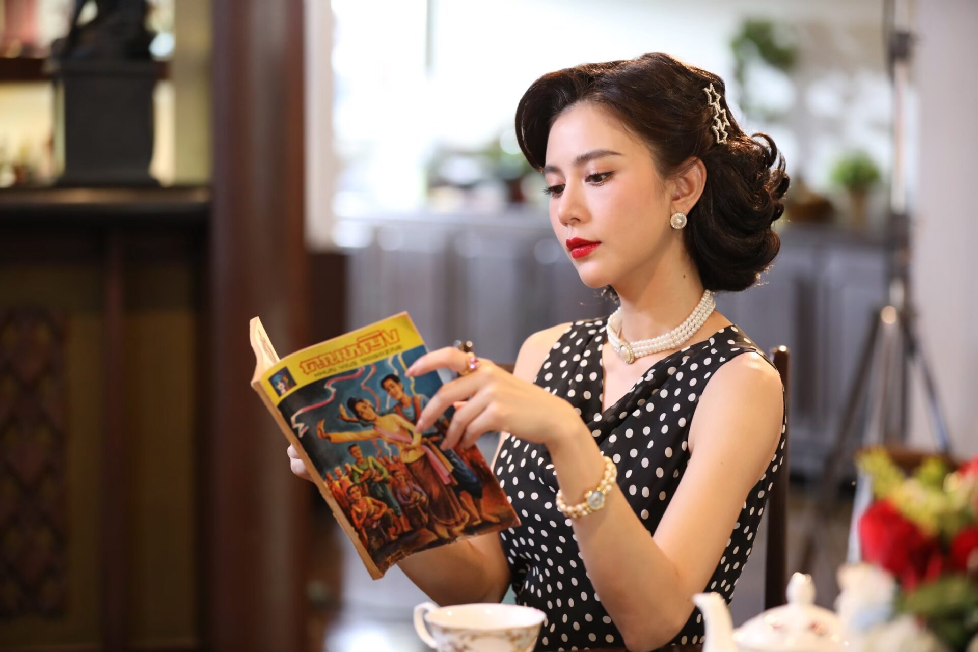 ส่วนการได้เล่นคู่กับพี่เอิร์ท เป็นครั้งแรกที่ได้ร่วมงานกันเลยค่ะ พี่เอิร์ทเป็นพี่ที่น่ารักมาก ๆ ในละครบทคุณอำพัน พี่เอิร์ทอาจจะดูนิ่ง ๆ ดูดุ แต่พี่เอิร์ทตัวจริงคือน่ารักมากค่ะ เวลาที่ไม่ได้ถ่ายทำ พี่เอิร์ทจะคอยถามเป็นไงบ้างลูก (ยิ้ม) คือพี่เอิร์ทเป็นพี่ที่ใจดีมาก ๆ ทำให้เราคุ้นเคยและกล้าที่จะเล่นกันอย่างเต็มที่ค่ะ อีกเรื่องที่กุ๊กกิ๊กชอบในละครเรื่องนี้ คือเครื่องแต่งกาย เพราะละครย้อนไปในยุค 70 ทำให้เราได้แต่งตัวย้อนไปในยุคนั้น ที่มีแฟชั่นสวยงามมีสีสัน ซึ่งเราคงไม่มีโอกาสได้แต่งตัวแบบนี้ในชีวิตประจำวันแน่ ๆ เลยมองว่านี่ก็เป็นอีกหนึ่งเสน่ห์ของละครเรื่องนี้