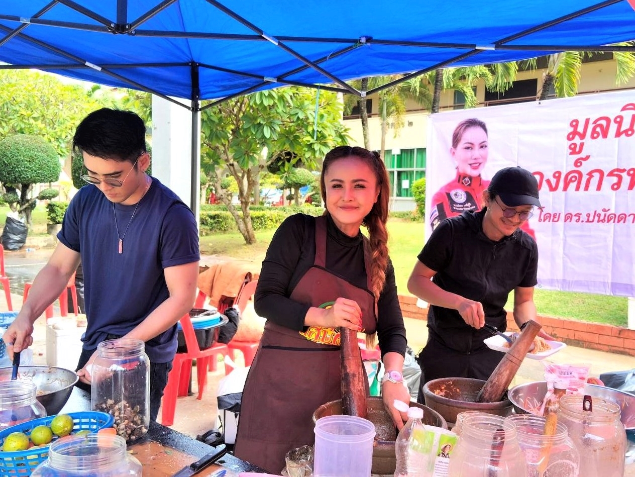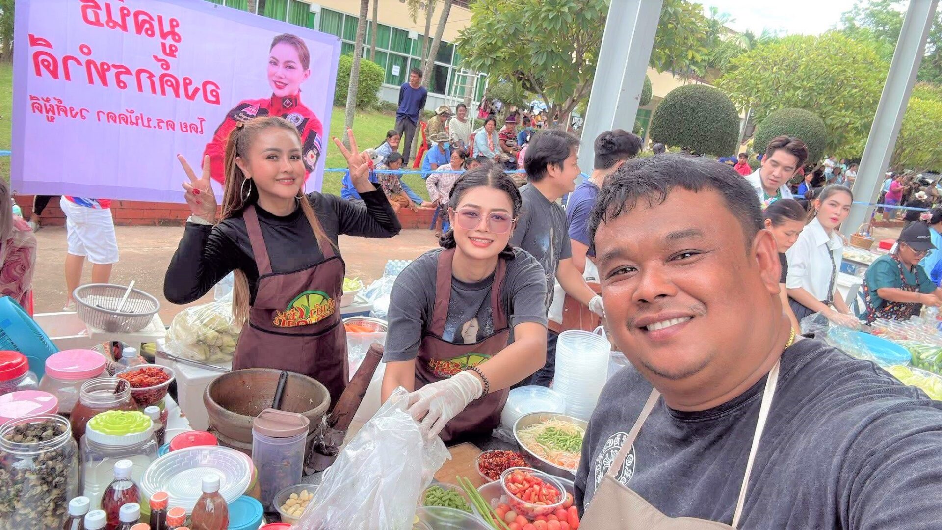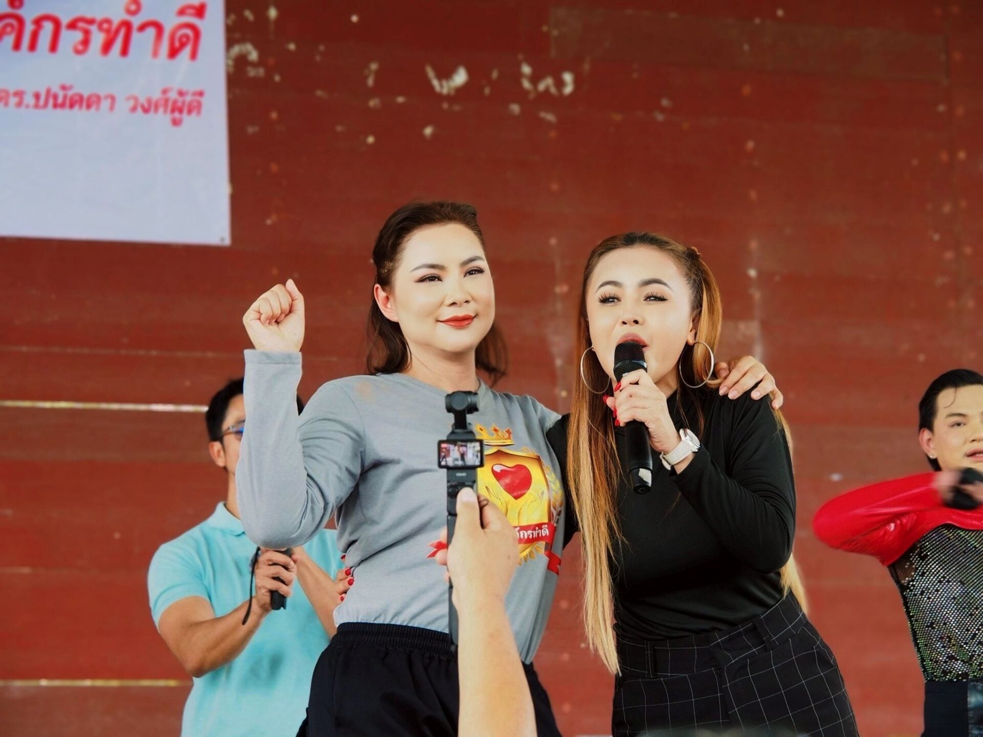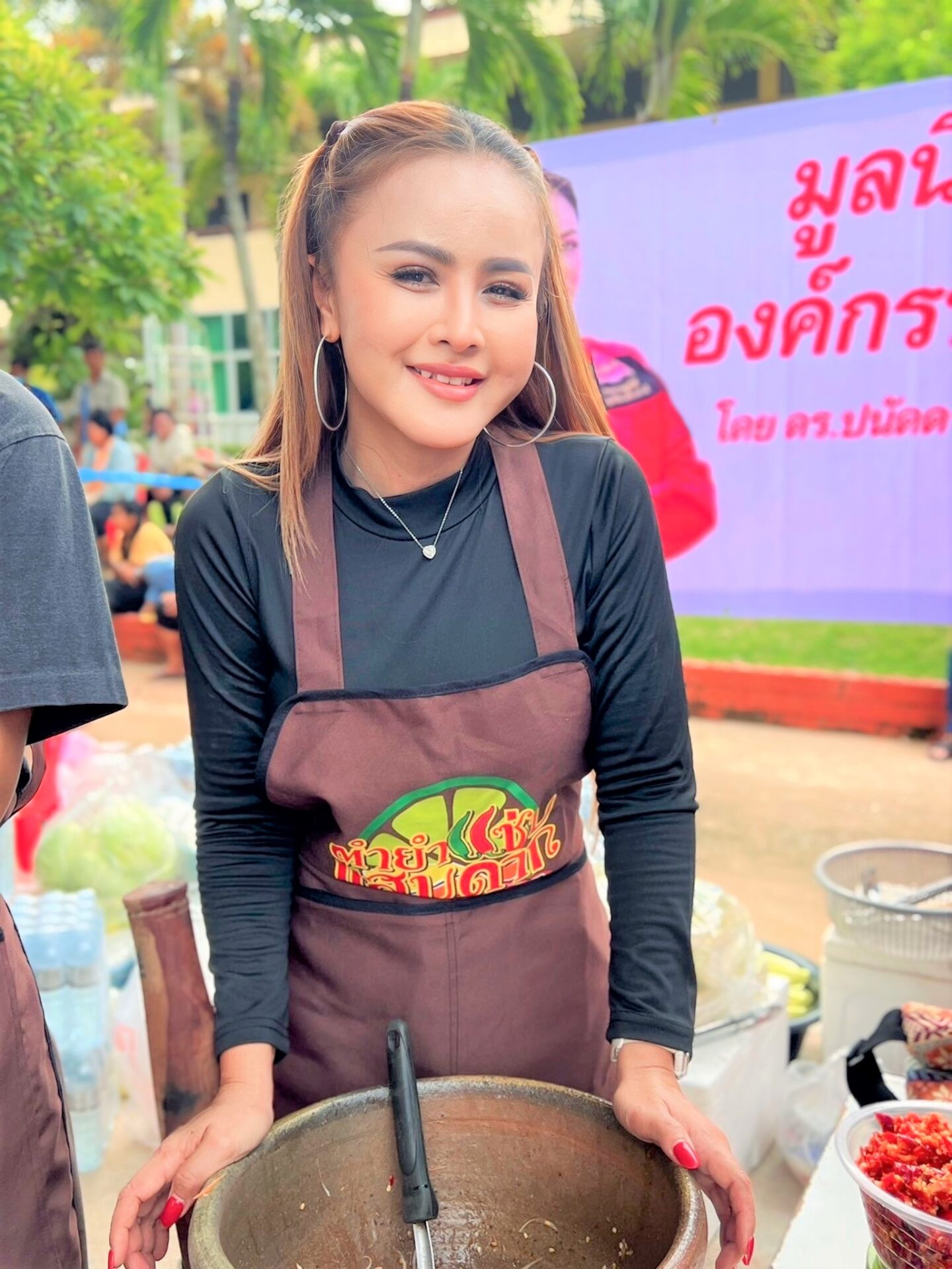 และครั้งนี้ศิลปินบ้านแกรมมี่โกลด์ ก็ไปร่วมงานเช่นเดียวกัน ซึ่งศิลปินจิตอาสาที่ไปร่วมเป็นประจำ คงหนีไม่พ้นสาวลำซิ่งเอาผัวไปเทิร์นคนนี้ “ลำยอง หนองหินห่าว” ที่ไม่ว่าจะเป็นงานเพื่อสังคมที่ไหน ก็จะเห็นโรงทาน ตำยำแซ่บ ของสาวลำยองทุกครั้งไป แม้ว่าจะเป็นช่วงโปรโมทเพลงใหม่อย่าง ผัวสามผัวสี่ (อ้ายรับได้บ่) แต่ก็ยังคงเห็นภาพตำส้มตำ ที่มีแต่รอยยิ้ม และมีความสุขทุกครั้งไป