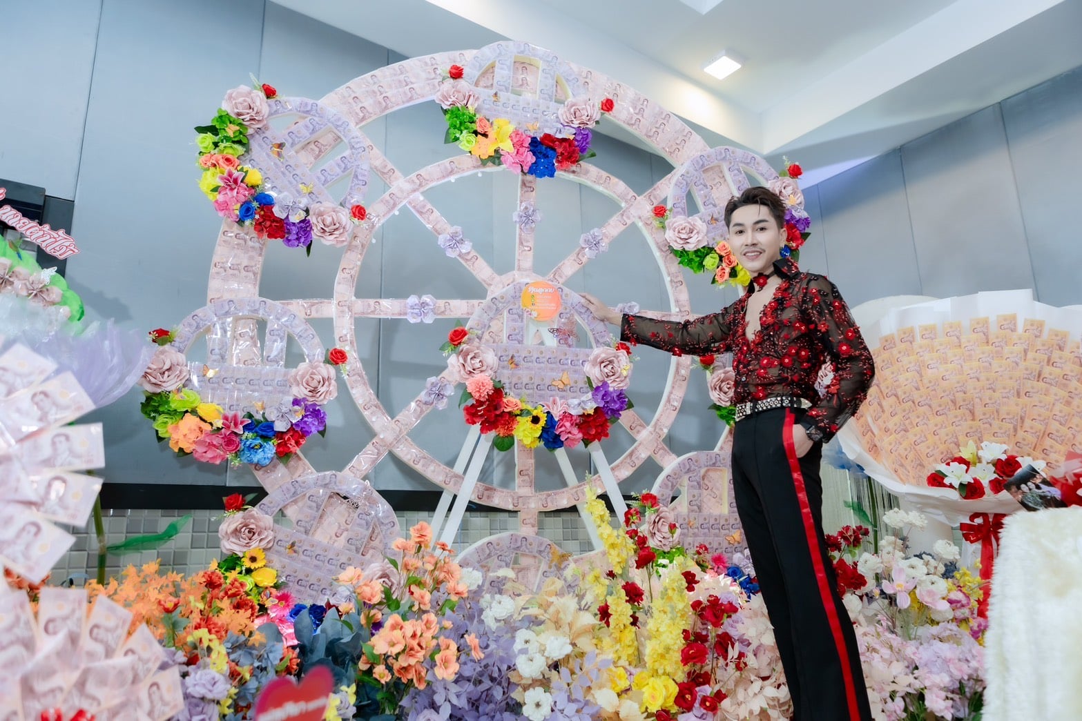 ไฮไลต์ที่ทำเอาหนุ่มตรีถึงกับตะลึง คือ “มาลัยเงิน” สุดครีเอทีฟที่แฟนคลับตั้งใจทำเป็นทรง ชิงช้าสวรรค์หมุนได้จริง ให้เข้ากับบรรยากาศงานวัด เพิ่มดีกรีความเซอร์ไพรส์จนเจ้าตัวพูดไม่ออก พร้อมเผยว่า “ไม่คิดว่าจะได้อะไรใหญ่โตขนาดนี้ ขอบคุณทุกคนจริงๆ ที่อยู่ข้างๆ กันมาตลอด” และยังมีของขวัญอื่นๆ อีกมากมาย ที่แฟนคลับทุกคนตั้งใจทำกันมาและนำมาให้ศิลปินอันเป็นที่รัก เติมเต็มบรรยากาศให้ทั้งงานอบอวลไปด้วยความสุขและรอยยิ้ม