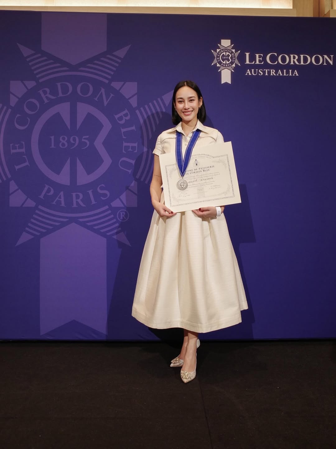 “หายจากวงการบันเทิงไปเรียนเกือบๆ 2ปีเลยค่ะ ไปเรียนทางเชฟขนมหวาน ไปเรียนประมาณ 9เดือน พอเรียนจบแล้วก็ต้องมีฝึกงานอีก 6เดือน และบวกกับที่ไปอยู่เพื่อเตรียมตัวล่วงหน้าก่อนประมาณ 3เดือน รวมๆแล้วก็เกือบ 2ปี หนูไปเรียนเลอ กอร์ดอง เบลอ ที่ประเทศออสเตรเลียค่ะ คือตั้งแต่เด็กๆเลยหนูเป็นคนชอบทำอาหารมาก แล้วก็ได้ยินชื่อโรงเรียนนี้มาตลอด เป็นความฝันมาตั้งแต่เด็กๆและก็จำมาตลอด จนวันนึงเราก็ตัดสินใจว่าไปลองเรียนดู ไปลองใช้ชีวิตดู