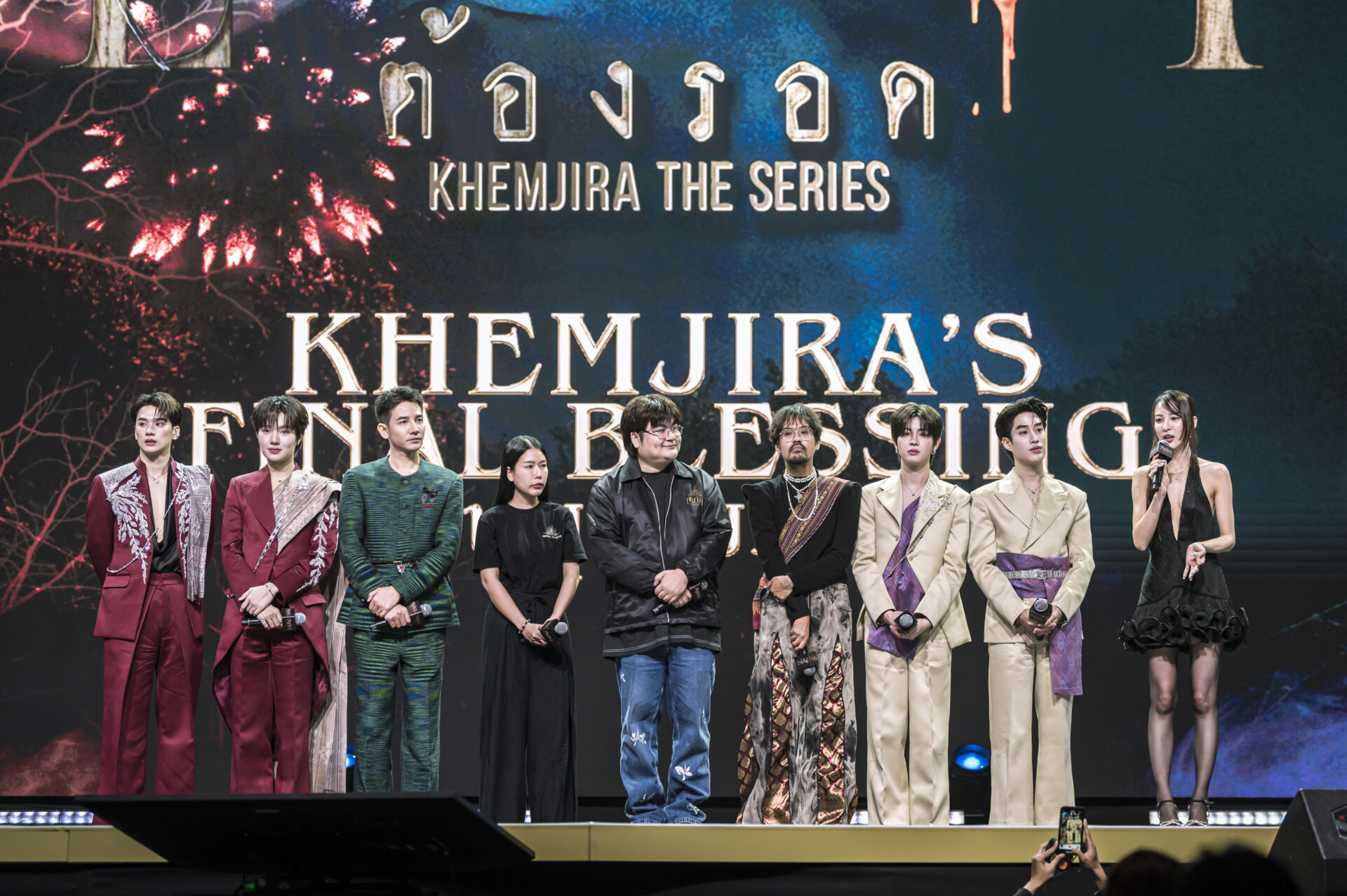 เปิดตัวด้วยขบวนฟ้อนรำที่อ่อนช้อยและงดงาม ต้อนรับงานบุญกับทีมนักแสดงนำโดย เก่ง-หฤษฎ์ บัวย้อย, น้ำปิง-นภัสกร ปิงเมือง, เติ้ล-มติมันท์ ศรีบุญเรือง, เฟิร์สวัน-วรรณกร เรืองรัตน์, กรีน-อัษฎาพร สิริวัฒน์ธนกุล, แพทจิ-จิรชาติ บุษปวนิช, ปัง-พิรุฬห์วัตน์ พรมรัตน์, เน็ต-สิรภพ มานิธิคุณ, น้ำมนต์-กฤตนัย อาสาฬห์ประกิต, เจนนิษฐ์ โอ่ประเสริฐ และ แม่นกน้อย อุไรพร ที่มาร่วมส่งท้าย ‘เขมจิราต้องรอด Khemjira The Series’ และได้ร่วมพูดคุยถึงซีรีส์ที่สร้างปรากฏการณ์ในวงการบันเทิง นำความเชื่อ ไสยศาสตร์ และความรัก ที่หลอมรวมเรื่องราวได้อย่างน่าสนใจ ความช่วยเหลือจาก ‘พ่อครูภรัณ’ ที่ทำให้ ‘เขมจิรา’ รอดชีวิต แต่กว่าจะผ่านคำสาปก็เกือบเอาชีวิตไม่รอด ทำเอาแฟน ๆ หายใจไม่ทั่วท้อง หลอนไปกับการล้างแค้นของ ‘ผีรำพึง’ ที่ตามรังควานไม่หยุด ยิ่งได้ชมแบบจอใหญ่ยักษ์ และเสียงที่ดังกระหึ่ม ทำให้ฉากหลอนก็ชวนขนลุก และจากจบก็กลายเป็นโมเมนต์ที่ลืมไม่ลง รวมถึงสิ่งที่ถูกพูดถึงจนเป็นกระแสมาตลอดกับ ความน่าสงสารของ ‘เขมจิรา’ ที่ต่างส่งใจช่วย ‘น้ำปิง’ ที่รับบทตัวละครนี้ให้รอดชีวิตให้ได้ และ ‘พ่อครูภรัณ’ ผู้มีอาคมไสยขาวซึ่ง ‘เก่ง’ ตกหัวใจคนดูให้เป็นทีมเดียวกันกับความกร้าวใจของพ่อครูในยุค 2025 ที่ใส่เสื้อแหวกอกในตำนาน