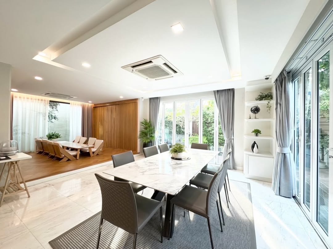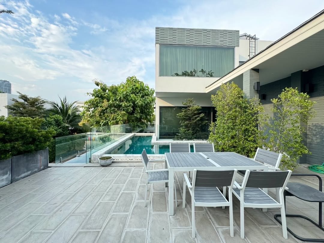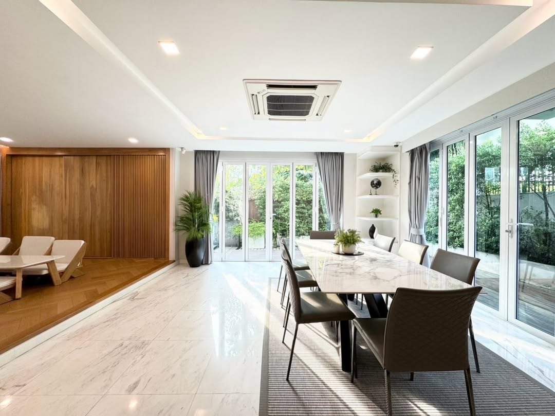 5 ห้องนอน / 5 ห้องน้ำ / 2 ห้องอเนกประสงค์ / 1 ห้องน้ำขนาดเล็ก / ครัวยุโรป / ครัวไทย / 1 ห้องแม่บ้านพร้อมห้องน้ำในตัว / สระว่ายน้ำ / ที่จอดรถได้ 4 คัน (ข้างนอก 2 คัน, ข้างใน 2 คัน (ค่าส่วนกลาง : ประมาณ 80,000 บาทต่อปี)”