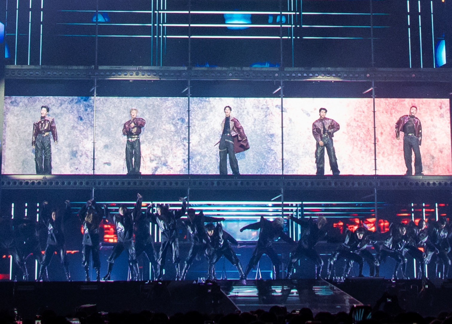 โดยมีทั้งพาร์ทวงและพาร์ทเดี่ยว 5 โชว์ 5 สไตล์ ที่เรียกได้ว่าเป็นบทพิสูจน์ศักยภาพของทั้ง 5 สมาชิกอย่างแท้จริง เริ่มจาก ปลั๊กกี้ ที่ปรากฏตัวพร้อมเพลง Sport Car พร้อมโชว์ลีลาการเต้นเอวหวานสุดร้อนแรงที่พลิ้วเป็นเอกลักษณ์ สนุกสะกดสายตาทุกวินาที ต่อด้วย กฤติน ที่พลิกอารมณ์ทั้งฮอลล์ให้สงบนิ่งราวถูกสะกดด้วยเพลง งานเต้นรำในคืนพระจันทร์เต็มดวง น้ำเสียงนุ่มลึกที่พาให้คนดูซึมซับทุกตัวโน้ต ซึ่งทำเอาแฟน ๆ ตะลึงกันเลยทีเดียว สตั๊นกันต่อในโชว์ของ ปาล์ม กับเพลง Birthday คือหนึ่งในโมเมนต์ที่ทำให้ทั้งฮอลล์เหมือนถูกหยุดเวลา เสน่ห์ของเขาถ่ายทอดผ่านทั้งสายตา การควบคุมจังหวะ และน้ำหนักการเต้นที่แม่นยำจนผู้ชมแทบไม่กะพริบ ยิ่งเมื่อ ปลั๊กกี้ ก้าวขึ้นมาร่วมสเตจ ความดุของเพอร์ฟอร์มานซ์ก็ถูกยกระดับทันที การประสานกันอย่างเป๊ะของทั้งคู่ ทั้งลีลาการเต้น มูฟเมนต์ และพลังบนเวที ทำให้โชว์นี้ดูสมบูรณ์แบบอย่างมีมิติ ส่วน เน ก็โปรยเสน่ห์ชวนกรี๊ดสลบไปกับโมเมนต์ที่เกือบหยุดหายใจด้วยลุคสุดเท่ พร้อมโชว์สกิลการร้องแบบจัดเต็มในเพลง นักเลงเก่า ที่แฟน ๆ กรี๊ดหนักมากกับโชว์ที่ไม่เคยเห็นเนในมุมนี้ และปิดท้ายด้วย จั๋ง ที่โชว์ศักยภาพการร้องสุดพลังในเพลง Mommae พร้อมจัดเต็มสเตปแดนซ์ แถมทำให้ใจเต้นรัว ๆ ด้วยการถอดเสื้อโชว์ซิกแพคแน่น ๆ ที่ทำเอาฮอลล์แทบลุกเป็นไฟ ก่อนจะตอกย้ำความสามารถอีกด้านด้วยการตีกลองที่ทั้งหนักแน่นและแม่นยำ เรียกเสียงกรี๊ดจนฮอลล์สั่นสะเทือน ซึ่งทันทีที่พาร์เดี่ยวจบลง ปาล์ม–กฤติน–ปลั๊กกี้ เสิร์ฟความฟินต่อเนื่อง ในเพลง Feeling Good ที่เปิดด้วยลีลาแท็ปแดนซ์ที่เฉียบคมสะกดทุกสายตาของปาล์ม ขณะที่กฤตินและปลั๊กกี้โชว์พลังเสียงที่ถ่ายทอดออกมาได้ลึกถึงอารมณ์ที่พุ่งตรงถึงคนดู ก่อนส่งต่อให้ จั๋ง และ เน ในเพลง Blueprint Supreme ที่ทั้งคู่งัดทุกสกิลออกมาอย่างไม่มีกั๊ก ทั้งร้อง ทั้งเต้น ทั้งการเพอร์ฟอร์มบนเวที ที่ทำให้โชว์นี้เต็มไปด้วยความเฟอร์เฟกต์