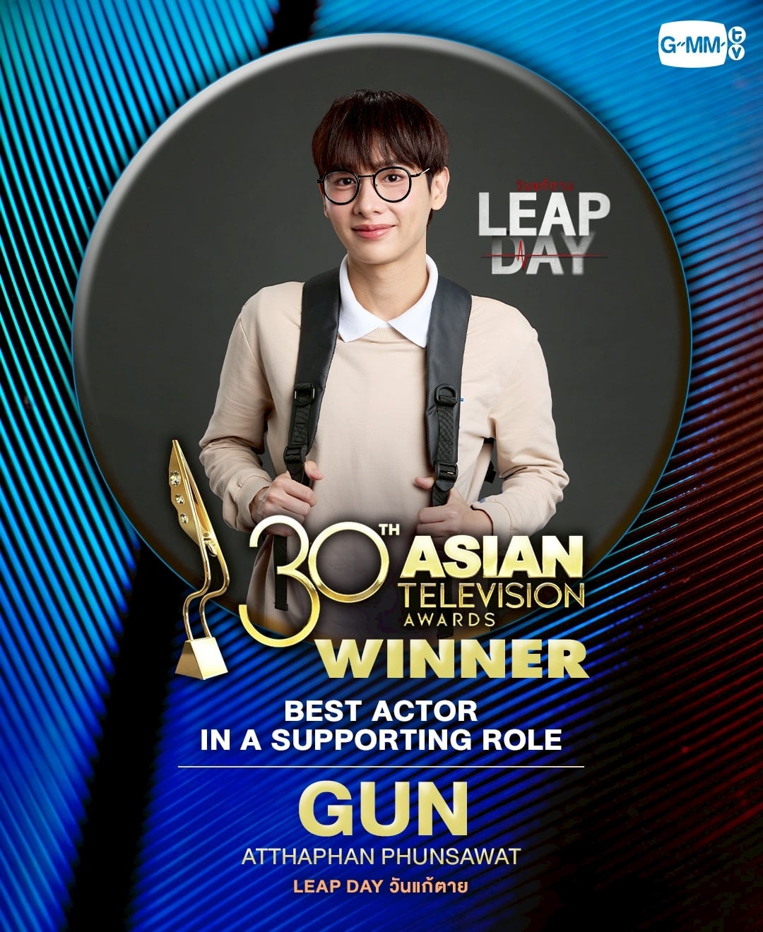 เริ่มกันที่ รางวัล BEST ACTOR IN A SUPPORTING ROLE ได้แก่ นักแสดงมากความสามารถ กัน-อรรถพันธ์ พูลสวัสดิ์ จากซีรีส์ LEAP DAY วันแก้ตาย ที่เรียกเสียงฮือฮาจากคนดู จนได้รับความนิยมอย่างมาก โดย กัน รับบทเป็นเด็กพิเศษ ซึ่งถือเป็นบทที่ท้าทาย แต่กันก็ตีบทแตกจนเป็นที่ยอมรับและคว้ารางวัลมาได้อีกครั้ง ซึ่งนับเป็นรางวัลที่ 2 ของ กัน กับรางวัลนี้ จากเวที Asian Television Awards โดยในปี 2019 กัน คว้ารางวัล Best Actor in a Supporting Role จากซีรีส์ The Gifted นักเรียนพลังกิฟต์