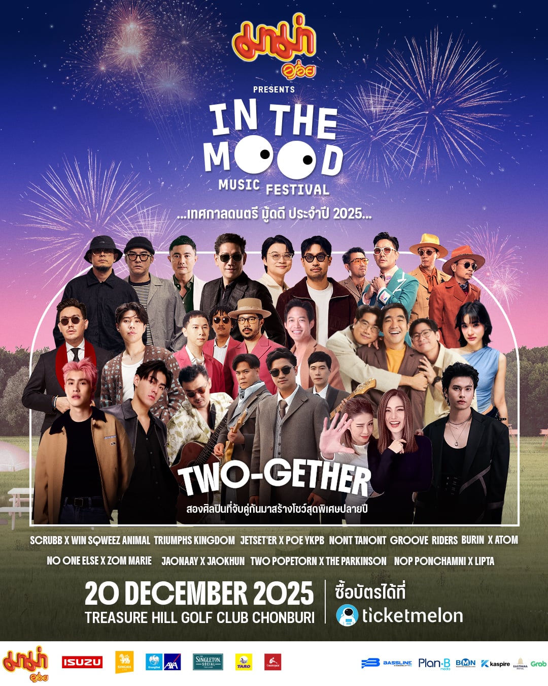เข้าสู่ช่วงโค้งสุดท้ายก่อนร่วมผ่อนคลายท่ามกลางทิวเขาและอากาศเย็นสบาย กับบรรยากาศ Natural Luxury ราวกับยกห้องนั่งเล่นท่ามกลางธรรมชาติมาไว้ตรงหน้า เตรียมต้อนรับเทศกาลเฉลิมฉลองส่งท้ายปีกับ “มาม่า Presents In The Mood Music Festival 2025” คอนเซ็ปต์ “TWO-GETHER” ในวันเสาร์ที่ 20 ธันวาคม 2568 ณ Treasure Hill Golf Club จังหวัดชลบุรี
