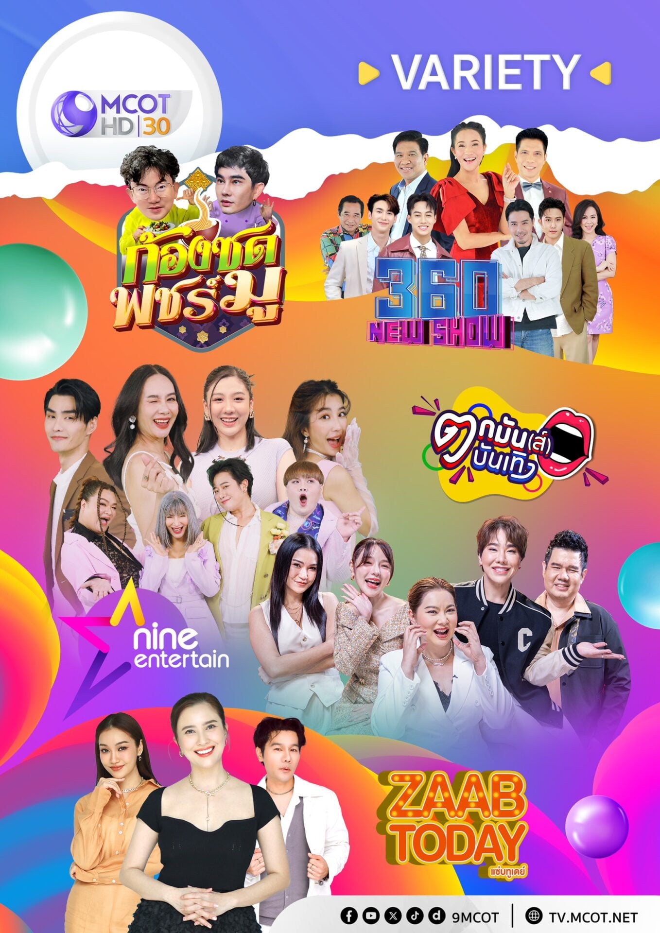 “เตรียมพบกับ Contemporary ที่หลากหลายสไตล์ที่ช่อง 9 ซึ่งเราจัดสรรมาให้แฟนหน้าจอเพียบครับ เริ่มที่รายการวาไรตี้บันเทิง ยอดนิยม ทุกวันจันทร์-พฤหัสบดี เวลา 10.30 น. พบกับรายการ 360 องศา New Show และเวลา 14.00 น. ในรายการ ZAAB TODAY ทุกวันจันทร์-ศุกร์ เวลา 11.00 น. เม้าท์ไปชิมไปกับ ก้อง ปิยะ และ พชร์ อานนท์ ในรายการ ก้องซด พชร์มู เวลา 11.30 น. พบกับรายการไนน์เอ็นเตอร์เทน พร้อมอัปเดตบันเทิงแบบฉับไว และในเวลา 18.15 น. มาขยี้ตีแผ่ทุกเรื่องที่คุณอยากรู้ เปิดฟลอร์เขย่าคอลูกทุ่ง ในรายการตกมันส์บันเทิง